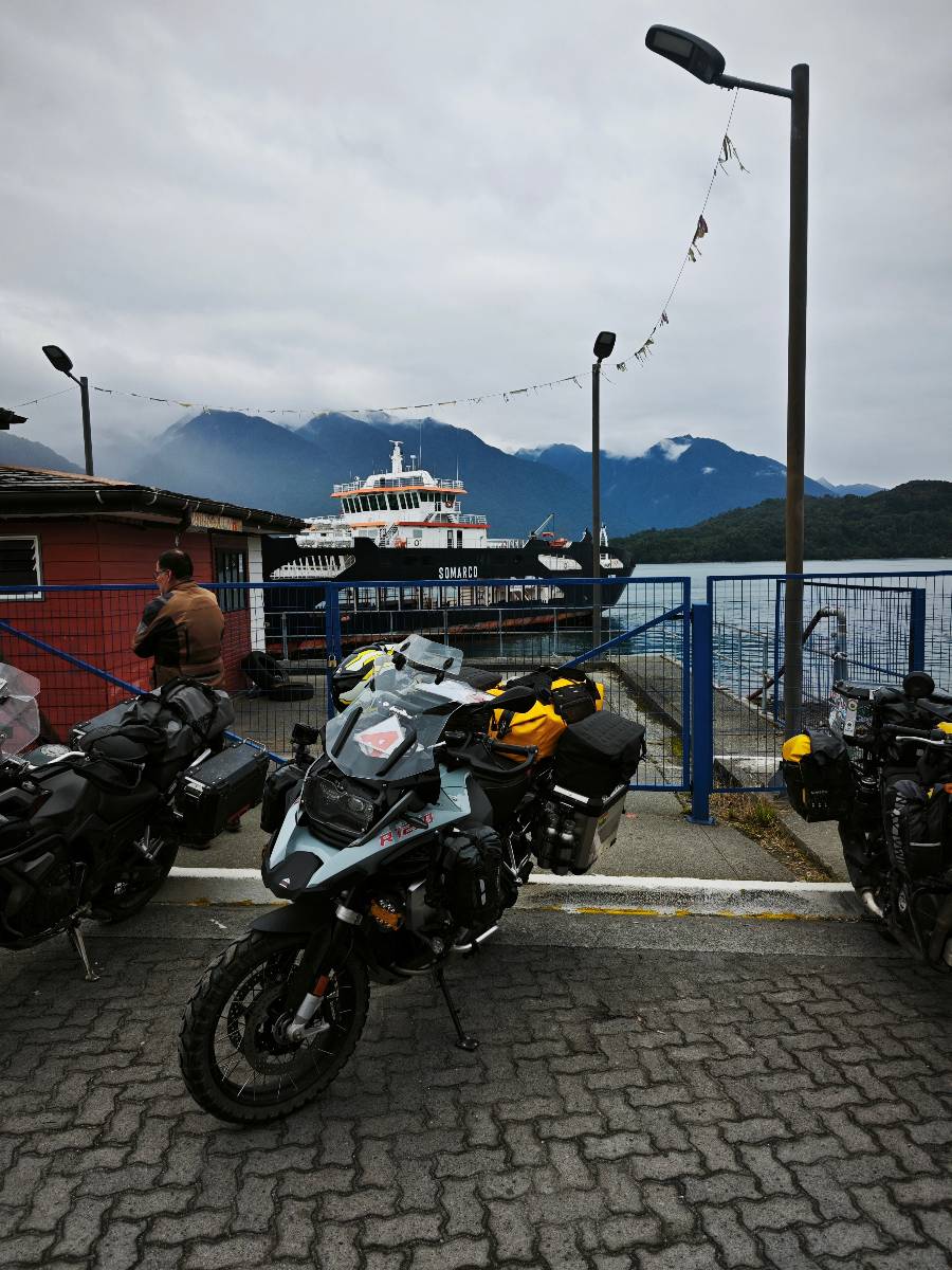 Die erste Fähre habe ich geschafft aber die war auch die Einfachere. In Hornopirén wird es wahrscheinlich schwieriger. Ich weiß, dass ich eine Reservierung brauche, die habe ich aber nicht. Wiederum von anderen Fahrern aus der WhatsApp-Gruppe weiß ich, daß ich mich einfach vorne anstellen muss und wenn Platz ist komme ich mit.