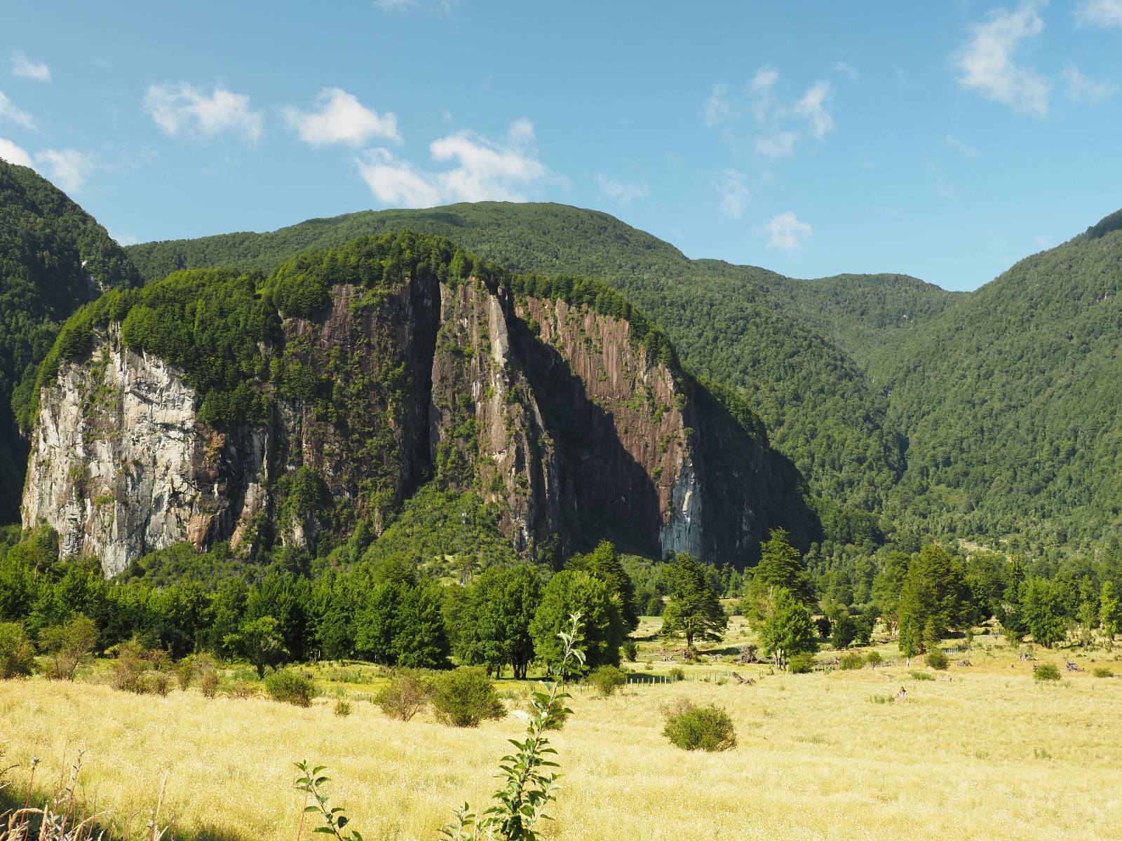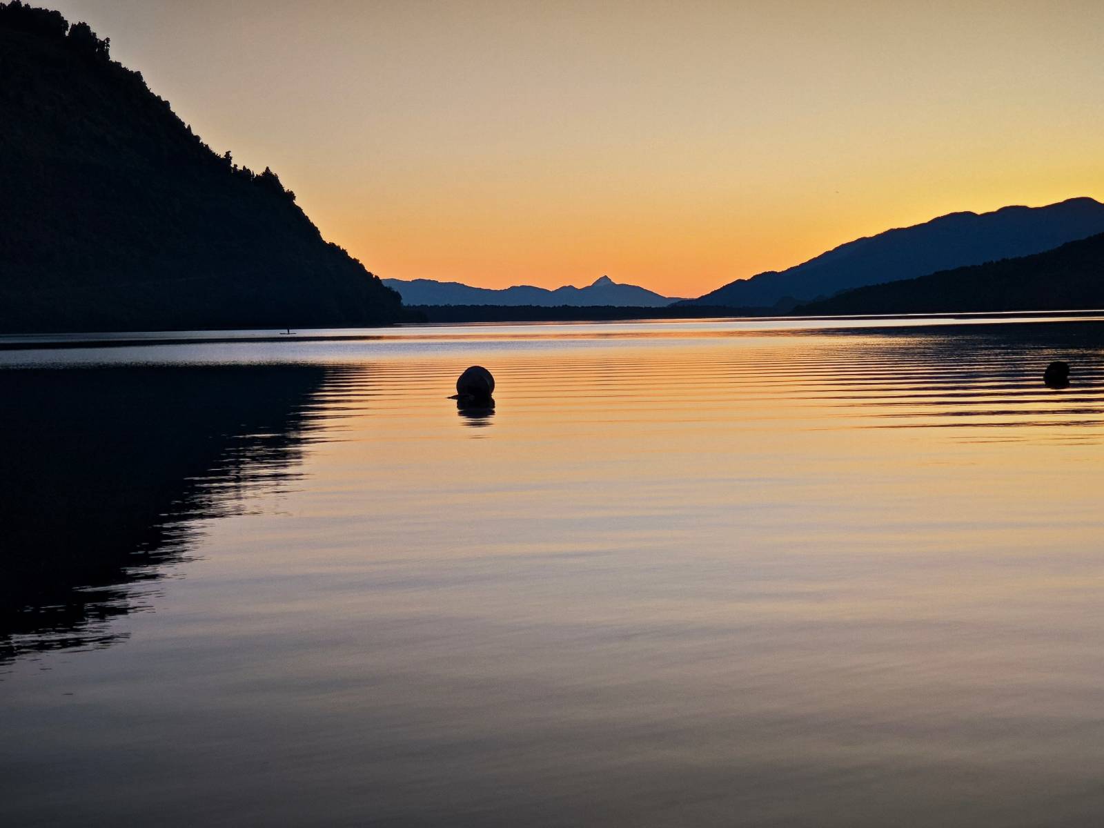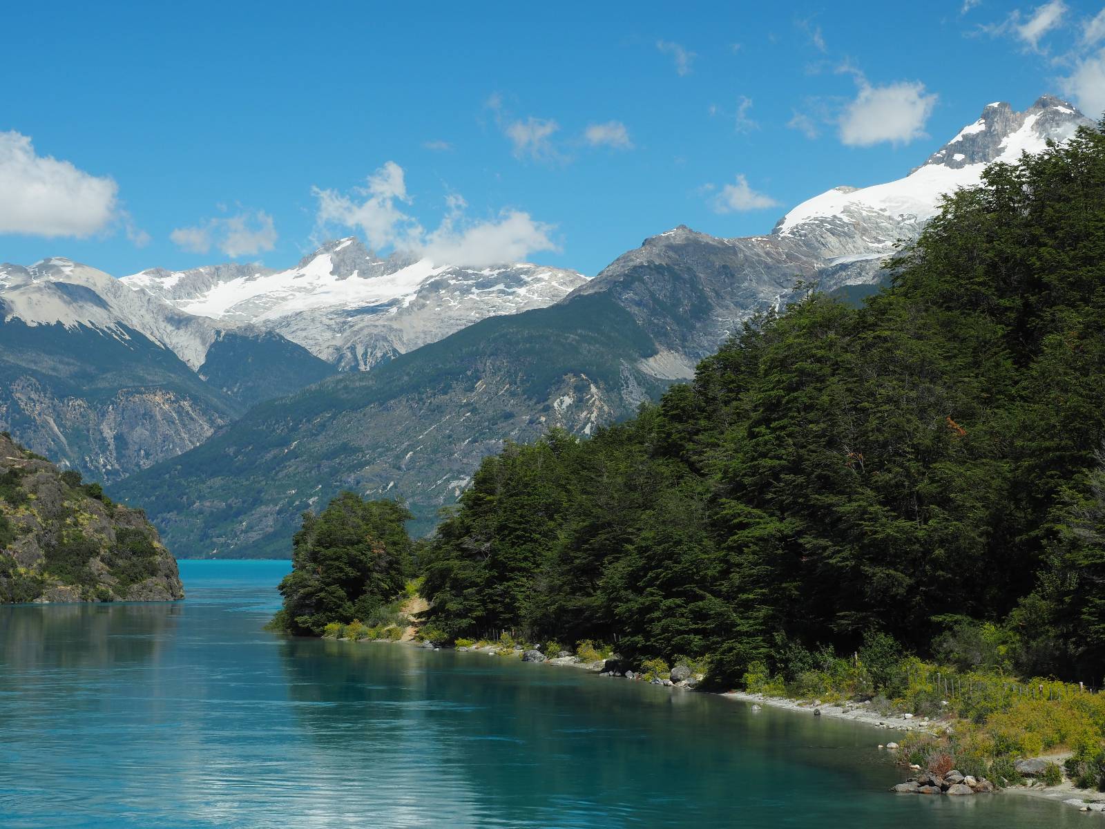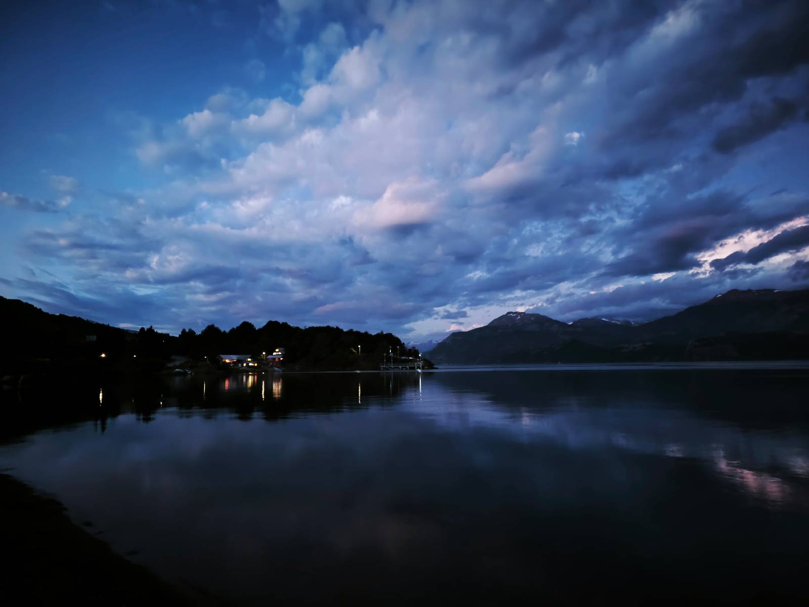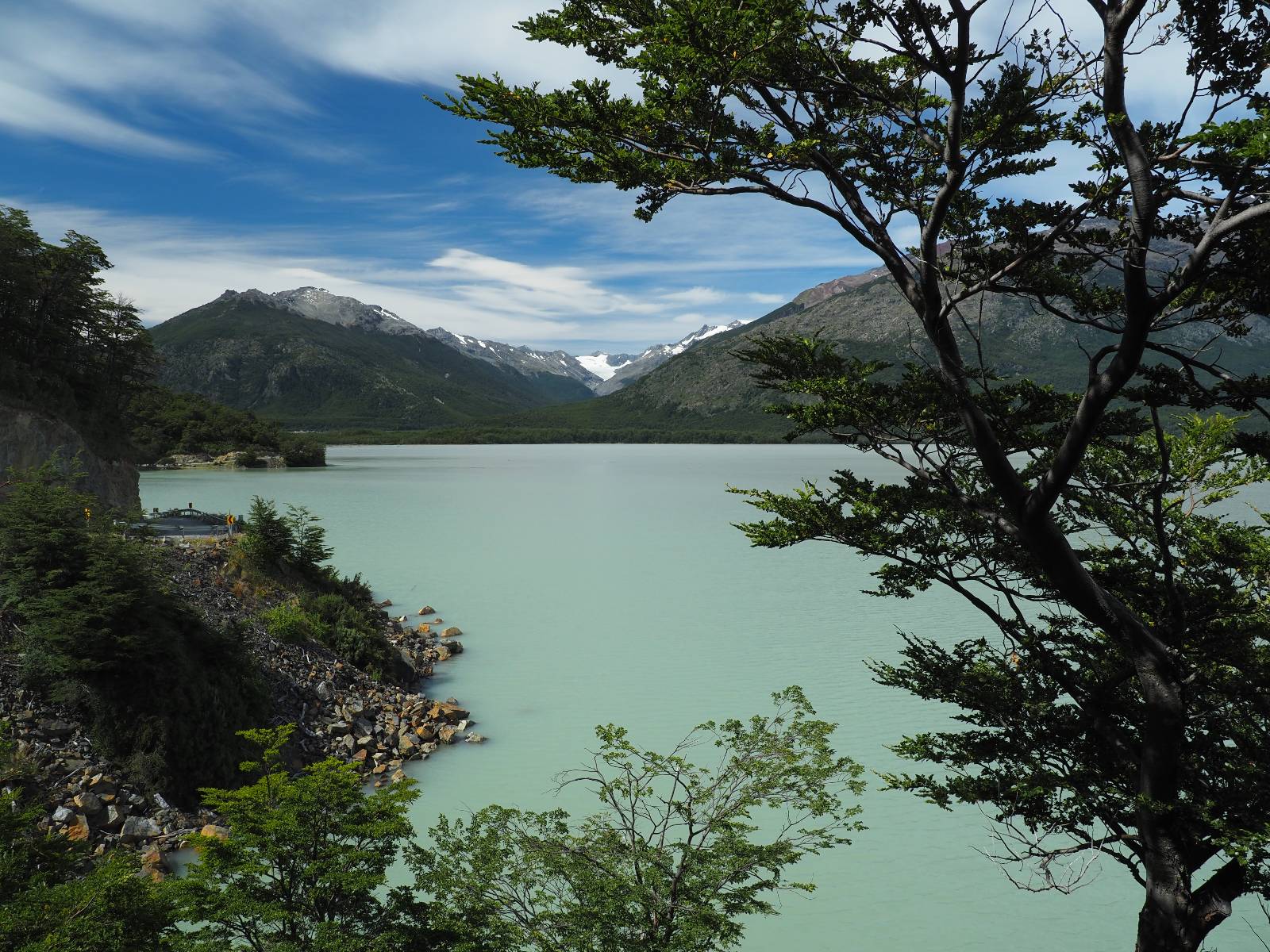 Der nächste Tag beginnt wesentlich schöner und es scheint sogar warm zu werden. Die Sachen sind doch soweit trocken geworden und den Rest müssen Sonne und Fahrtwind erledigen. So genieße ich einfach meine Fahrt und die blauen Stellen am Himmel, durch die immer mehr die Sonne scheint! Es lässt sich wunderbar cruisen, hier und da mache ich ein paar Bilder, halte auf einen Hamburger und Kaffee an. Ich fahre durch bis Puyuhuapi, einem kleinen Dorf am Ende eines Fjordes, das 1935 von ein paar Deutschen gegründet wurde. Es sieht etwas touristisch aus, lebt zumindest nur davon, so scheint es. Den alten Friedhof mit den deutschen Gräbern besuche ich nicht, trozdem ich mir hier zwei nächte gönne. Der eine Tag geht mal wieder für die Homepage und Film schneiden drauf, wobei ich in meinem Hostal einen kleinen Aufenhaltsraum habe, mit wunderbarem Blick auf das Wasser! Am letzten Abend esse ich Outdoor an einem Hamburgerwagen und unterhalte ich mich mit einem Reisepaar, das allerding nur ein paar Wochen unterwegs ist. Ich genieße den Blick auf das Wasser, ein Standup-Paddler zieht gemütlich seine Runde und irgend etwas anderes als Fisch schwimmt entfernt auch herum, allerdings kann ich es nicht erkennen.