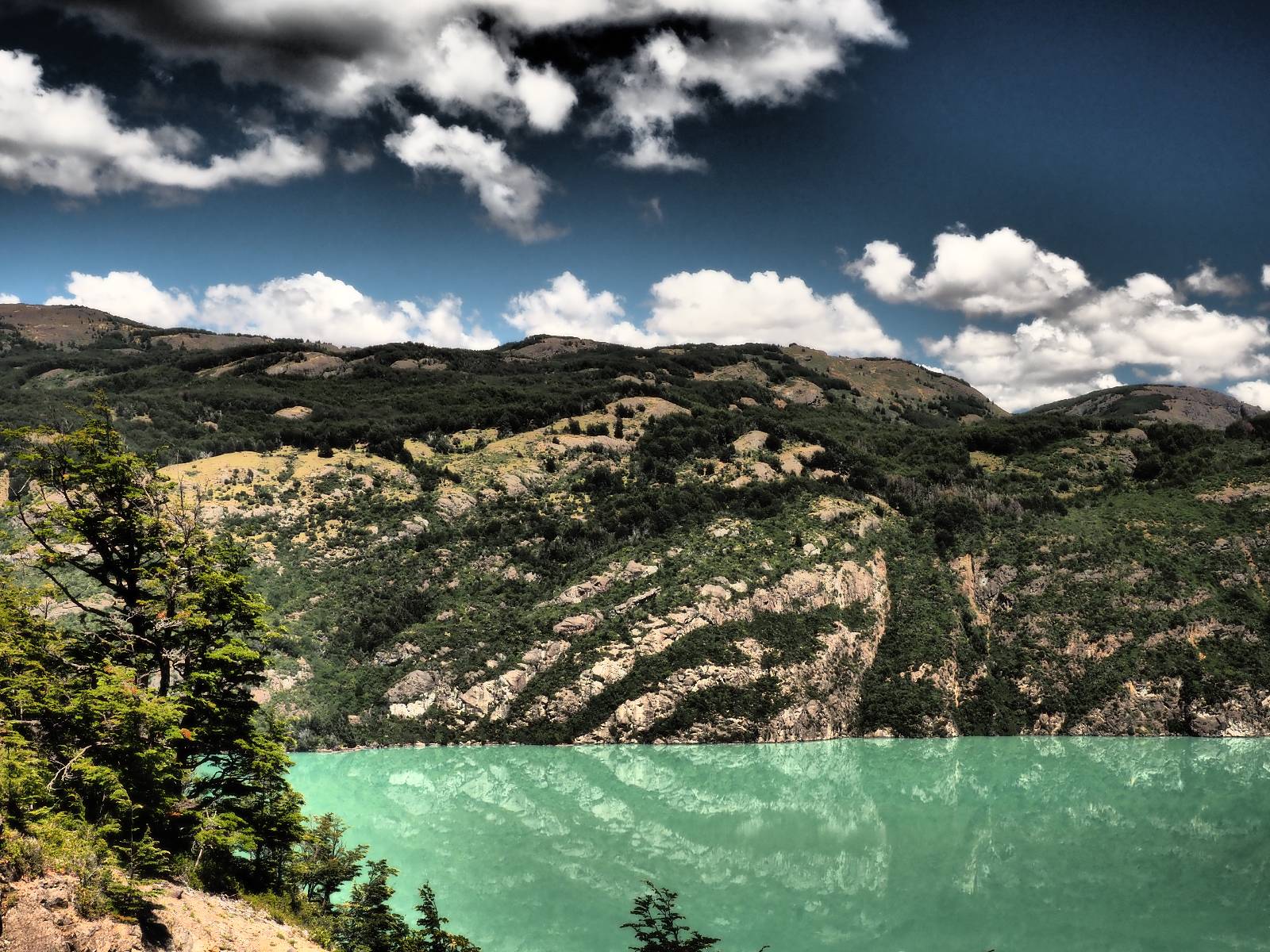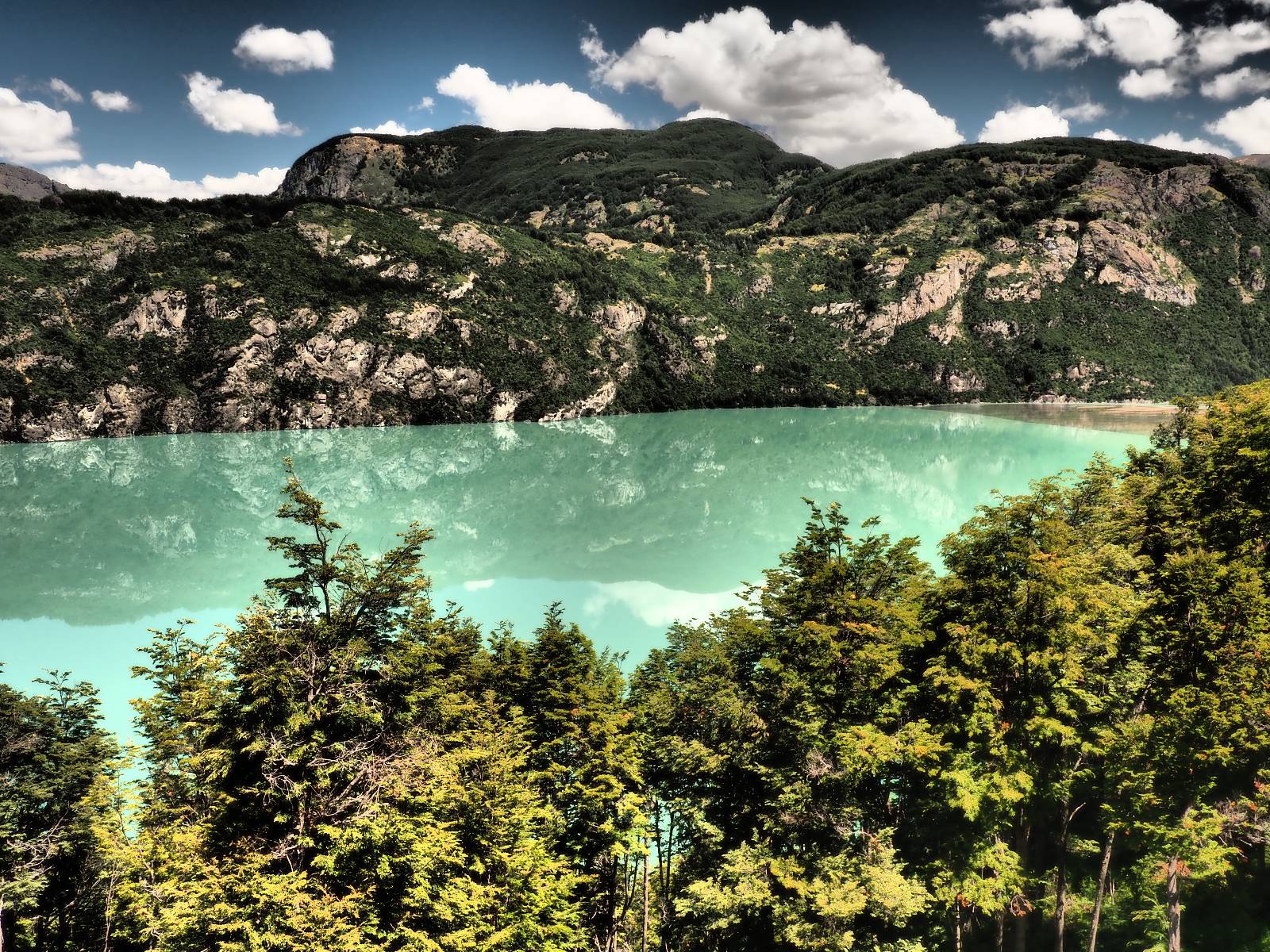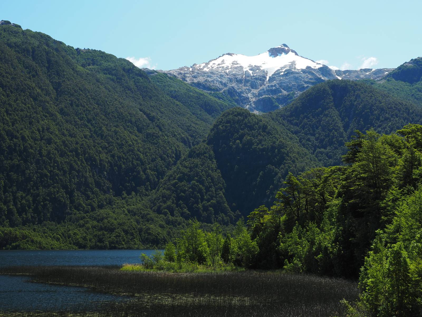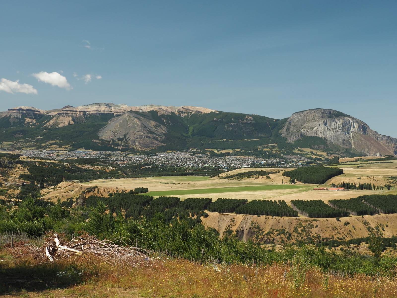 Der nächste Tag beginnt wesentlich schöner und es scheint sogar warm zu werden. Die Sachen sind doch soweit trocken geworden und den Rest müssen Sonne und Fahrtwind erledigen. So genieße ich einfach meine Fahrt und die blauen Stellen am Himmel, durch die immer mehr die Sonne scheint! Es lässt sich wunderbar cruisen, hier und da mache ich ein paar Bilder, halte auf einen Hamburger und Kaffee an. Ich fahre durch bis Puyuhuapi, einem kleinen Dorf am Ende eines Fjordes, das 1935 von ein paar Deutschen gegründet wurde. Es sieht etwas touristisch aus, lebt zumindest nur davon, so scheint es. Den alten Friedhof mit den deutschen Gräbern besuche ich nicht, trozdem ich mir hier zwei nächte gönne. Der eine Tag geht mal wieder für die Homepage und Film schneiden drauf, wobei ich in meinem Hostal einen kleinen Aufenhaltsraum habe, mit wunderbarem Blick auf das Wasser! Am letzten Abend esse ich Outdoor an einem Hamburgerwagen und unterhalte ich mich mit einem Reisepaar, das allerding nur ein paar Wochen unterwegs ist. Ich genieße den Blick auf das Wasser, ein Standup-Paddler zieht gemütlich seine Runde und irgend etwas anderes als Fisch schwimmt entfernt auch herum, allerdings kann ich es nicht erkennen.