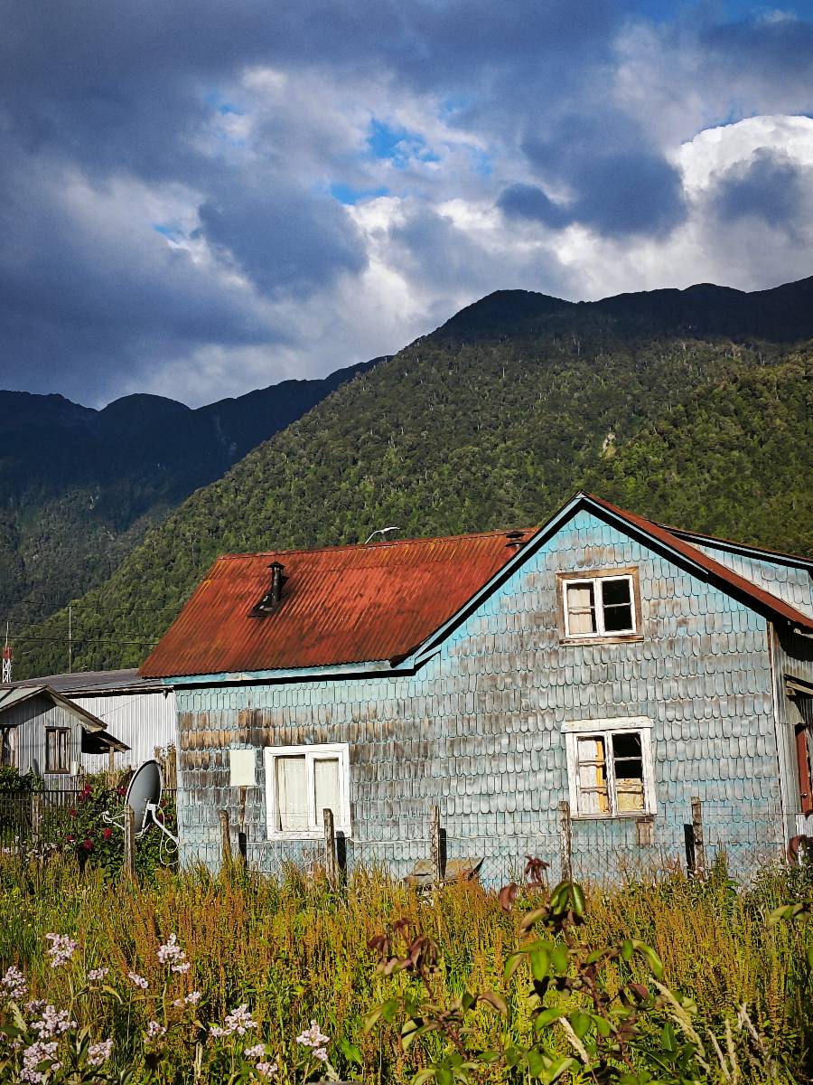 Vor Chaitén sind die Handschuhe durch aber die Griffheizung hält die Hände warm, zumindest von unten. Die Jacke macht sich auch langsam wieder bemerkbar. Ich brauche eine vernünftige Lösung für solches Wetter! Ich Klapper mal wieder ein paar Hostals ab aber es ist nunmal Sommer und Saison und viele haben schon außen dran stehen, das sie keine Zimmer mehr haben. Ich stehe triefend in einem kleinen Hotel und mir ist es schon peinlich, dass das Wasser nicht nur von den Ärmeln tropft, sondern schon fast ein kleines Bächlein ist. Ich bekomme dort ein ganz nettes Zimmer allerdings ungeheizt! Wie nett, dass wenig später der Regen aufhört und tatsächlich sich die Sonne blicken lässt. Wirklich warm ist es nicht aber die Sonne hilft ungemein! Ich besuche das kleine Vulkanmuseum, dass über den verheerenden Vulkanausbruch des gleichnamigen Vulkans 2008 berichtet. Am Museum wurden einige Ruinen belassen, die als Zeugen dienen, wie ein Teil des Dorfes zerstört und durch den Fluß zweigeteilt wurde. Natur kann schon ganz schön gewaltig sein, in jeglicher Hinsicht!