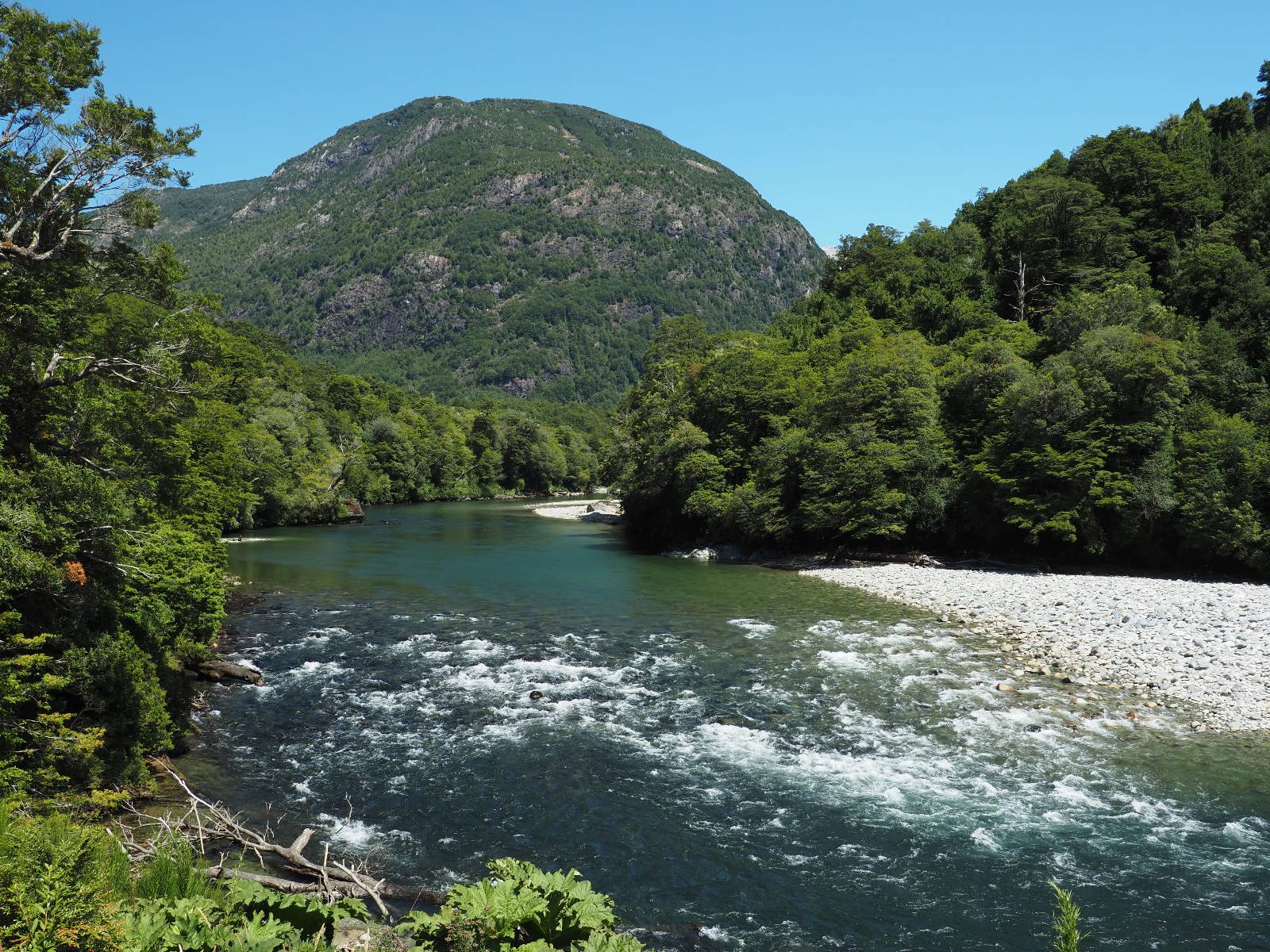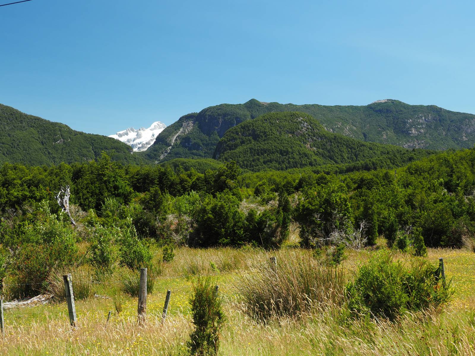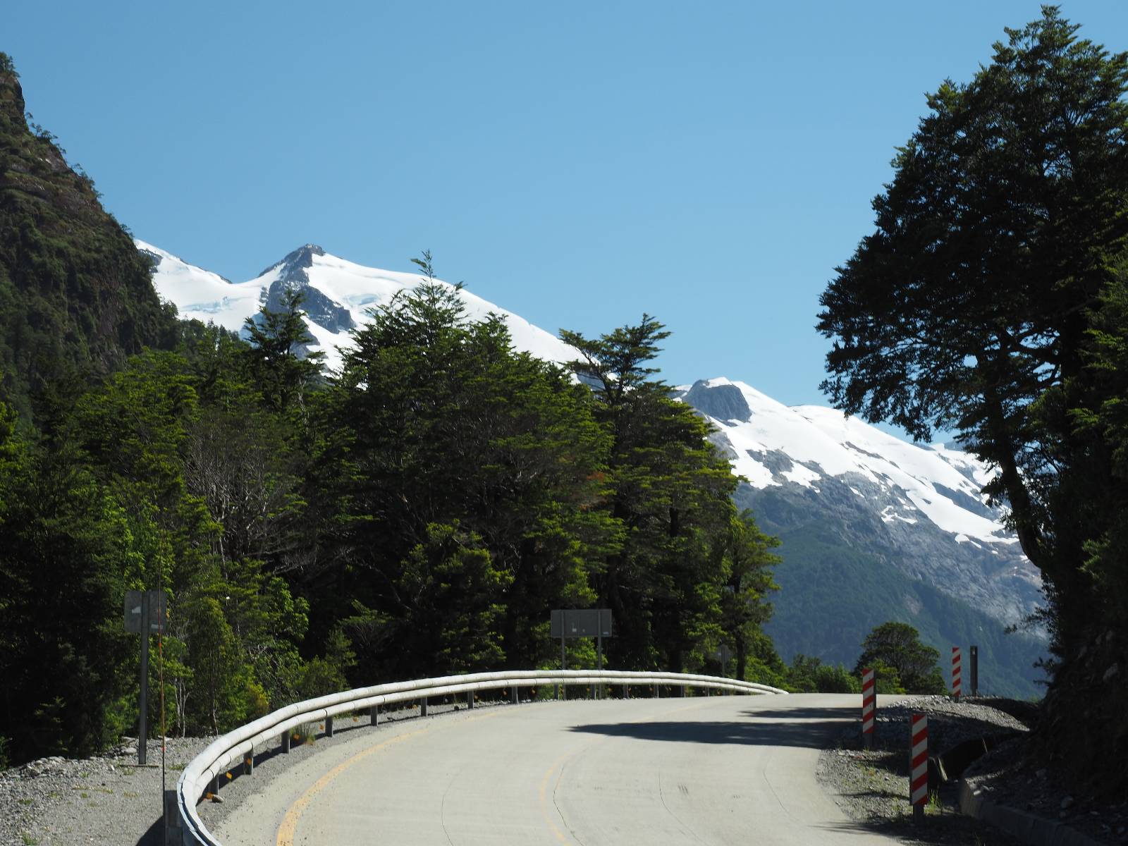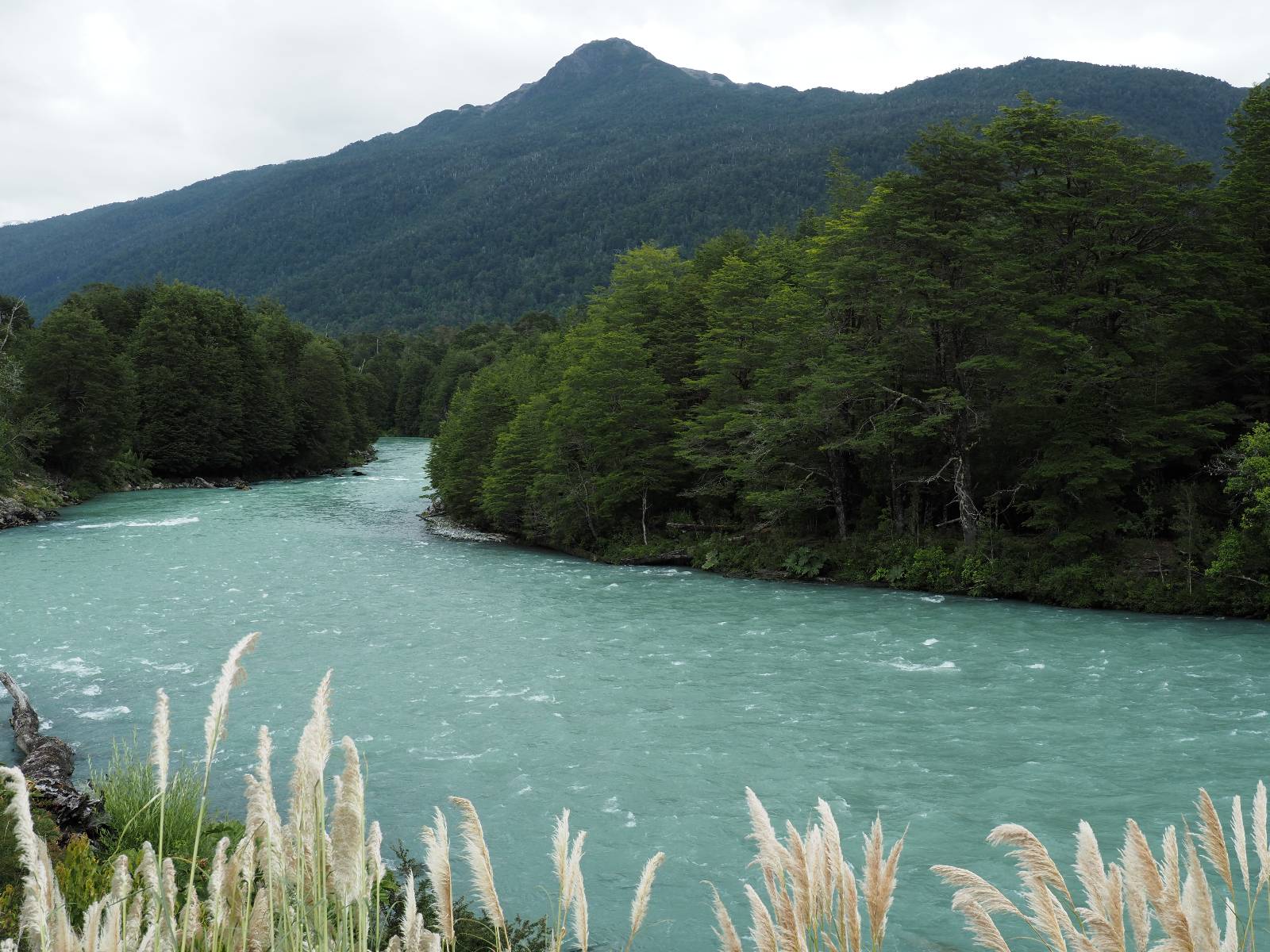 Bereits auf der langen Fahrt hatten sich Regen und Wind schon angekündigt und so erwartet mich die Carretera Austral mit Regen! Ich lege zumindest die Regenhose an und mache soweit alles dicht. Einen weiteren Wassereinbruch brauche ich nicht! Kaum wieder auf der Straße wird das so eine Art Wettrennen! Jeder fährt über die nasse Schotterstraße wie er kann. Die Straße mutet schwarz an und glänzt vor nässe und ist von einem Dschungel an Grün eingebettet. Das was ich hinter der Grenze nach Chile schon empfand, fühlt sich hier noch einmal viel dichter, grüner und undurchdringlicher an! Ich arbeite mich an den Langsamen und Mittelschnellen vorbei, die Kollegen aus der Slowakei sind nochmal viel schneller unterwegs, Paolo mit seinem unübersehbaren Pi auf dem Koffer will ins Zelt und sucht sich auf iOverlander einen Platz und ich will bis Chaitén. Der Dschungel ist irgendwie faszinierend und da ich keine Vorstellung von der Careterra Austral habe, hoffe ich, dass es nicht nur undurchdringlichen Dschungel, mit kaum Wegen abseits davon gibt.
