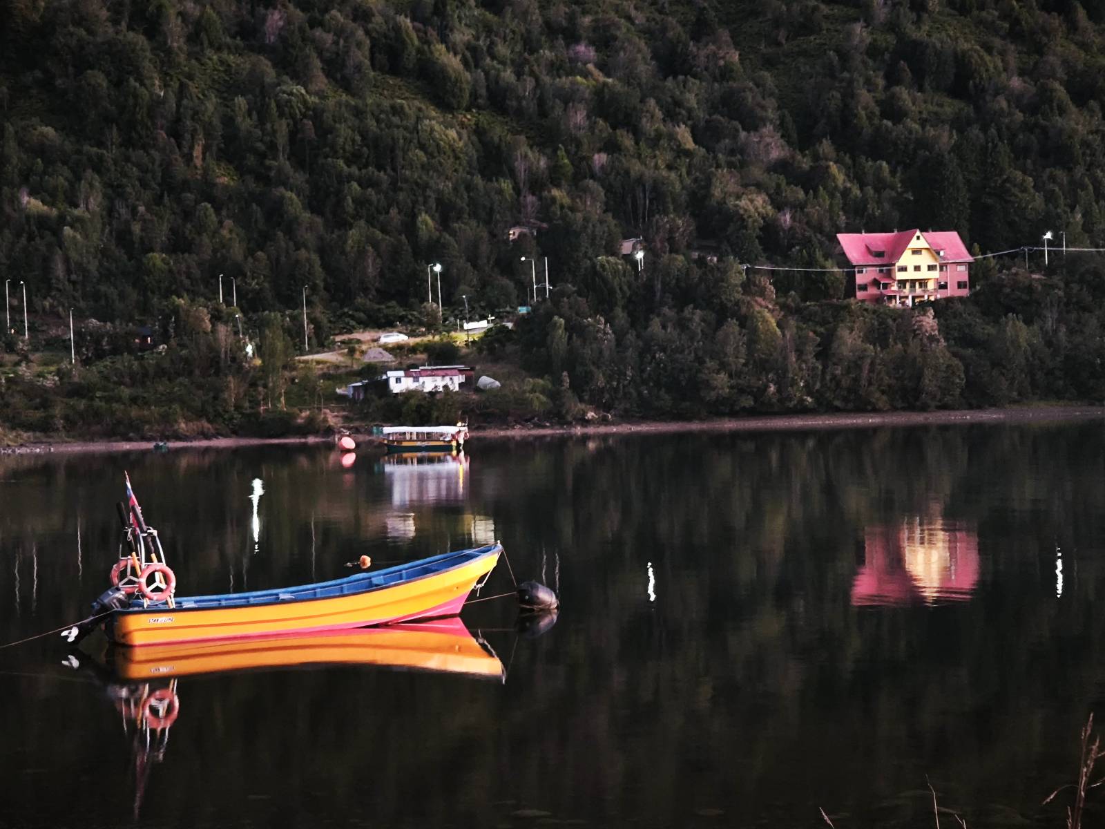 Ich gehe in ein kleines Hostal, welches sehr gute Bewertungen bekommen hatte und auch der Inhaber Sebastian sagt mir, ich soll einfach in das Ticketoffice gehen und mein Glück versuchen. Gesagt getan, es ist Donnerstag und am Schalter wird mir gesagt, die Fähre ist ausgebucht und das früheste Ticket gibt es für Sonntag um 10:00 Uhr. Also kaufe ich das Ticket für Sonntag. Aber auch die Dame sagt mir, ich soll mich morgen einfach mal mit anstellen. Bei einem Kaffee und Kuchen schaue ich mir an, wie die 18:00 Uhr Fähre abgefertigt wird und bin auf den nächsten Tag gespannt. In einem einfachen Restaurant gleich in der Nähe vom Hotel gibt es eine Meeres-Eintopf und frisch gezapftes Bier. In den Muscheln knirscht ab und zu der Sand aber ansonsten ist er sehr lecker! Zurück im Hostal geselle ich mich zu Sebastian, dem Gast Sebastian und Almendra. Ich frage den Chef nach der Gitarre, die ich da stehen sehe und ob er spielt und so komme ich in den Genuss von ein paar Ständchen. Auch der andere Sebastian, von dem ich erfahre, dass er unterwegs ist, um die Überwachungs-Aparaturen der Fischfarmen zu kontrollieren spielt Gitarre und so übernimmt er und spielt und singt ebenfalls. So werde ich mal wieder daran erinnert, das es sich durchaus lohnen würde, wenn ich mich mehr mit meiner Gitarre beschäftige.