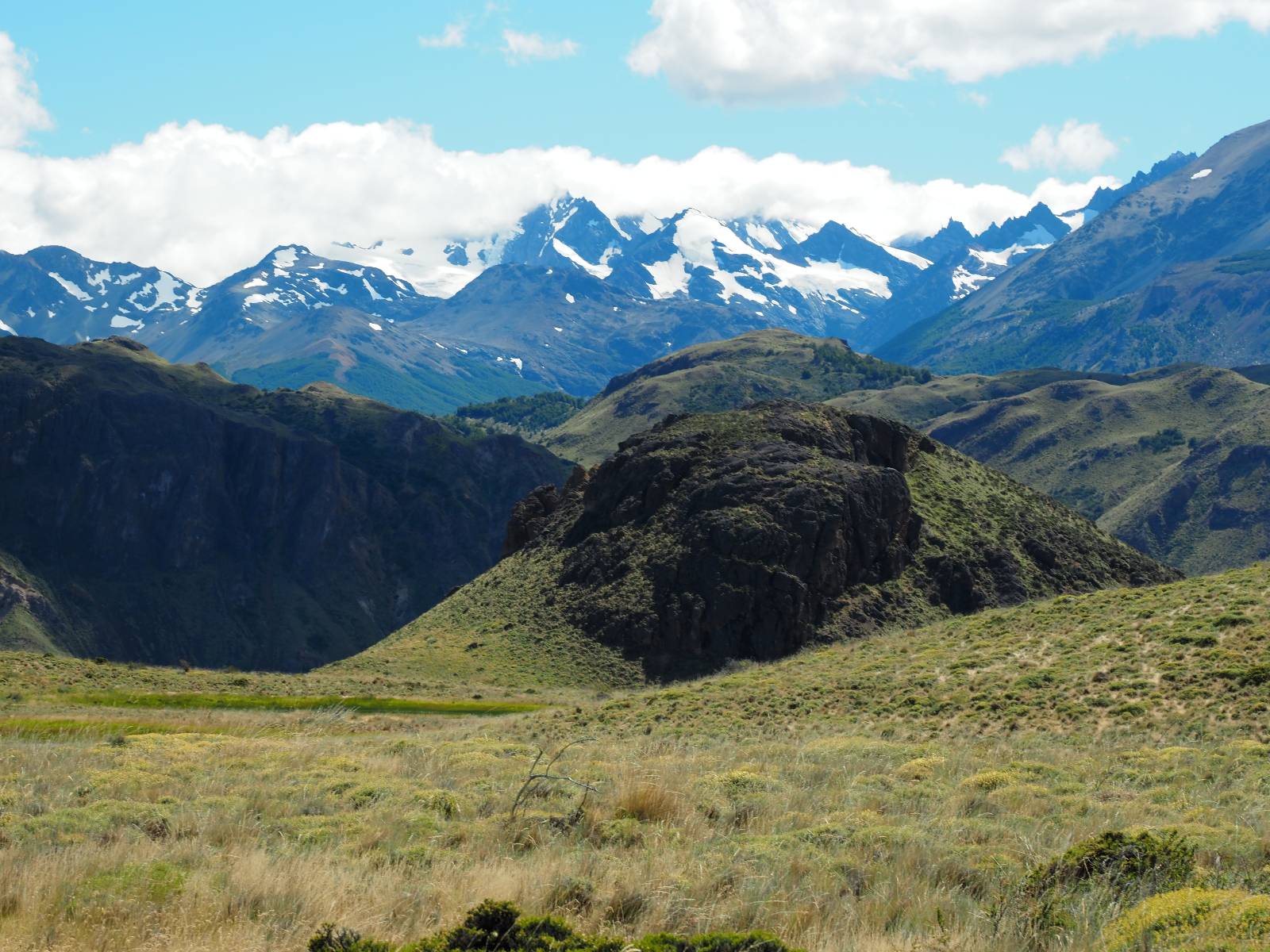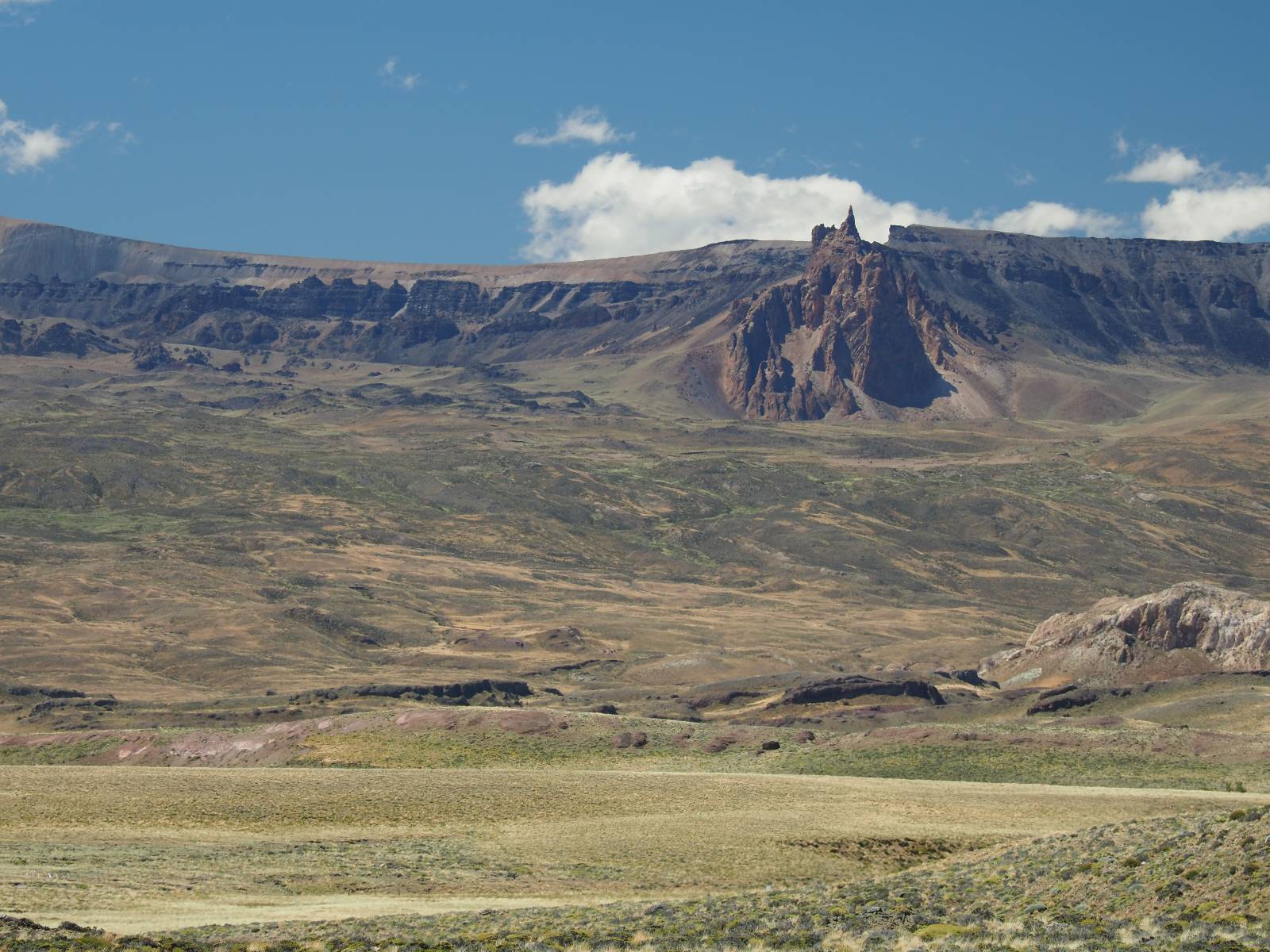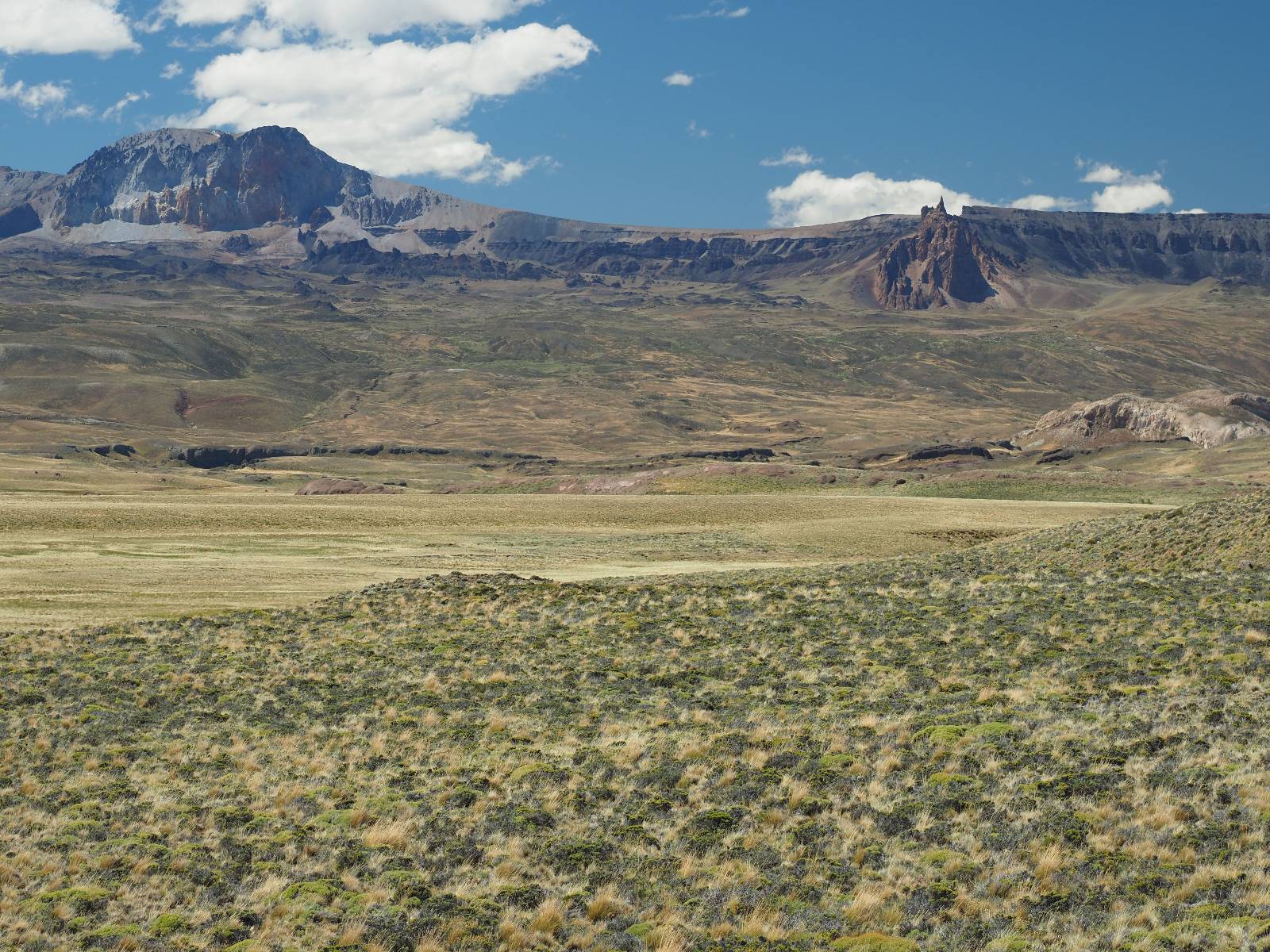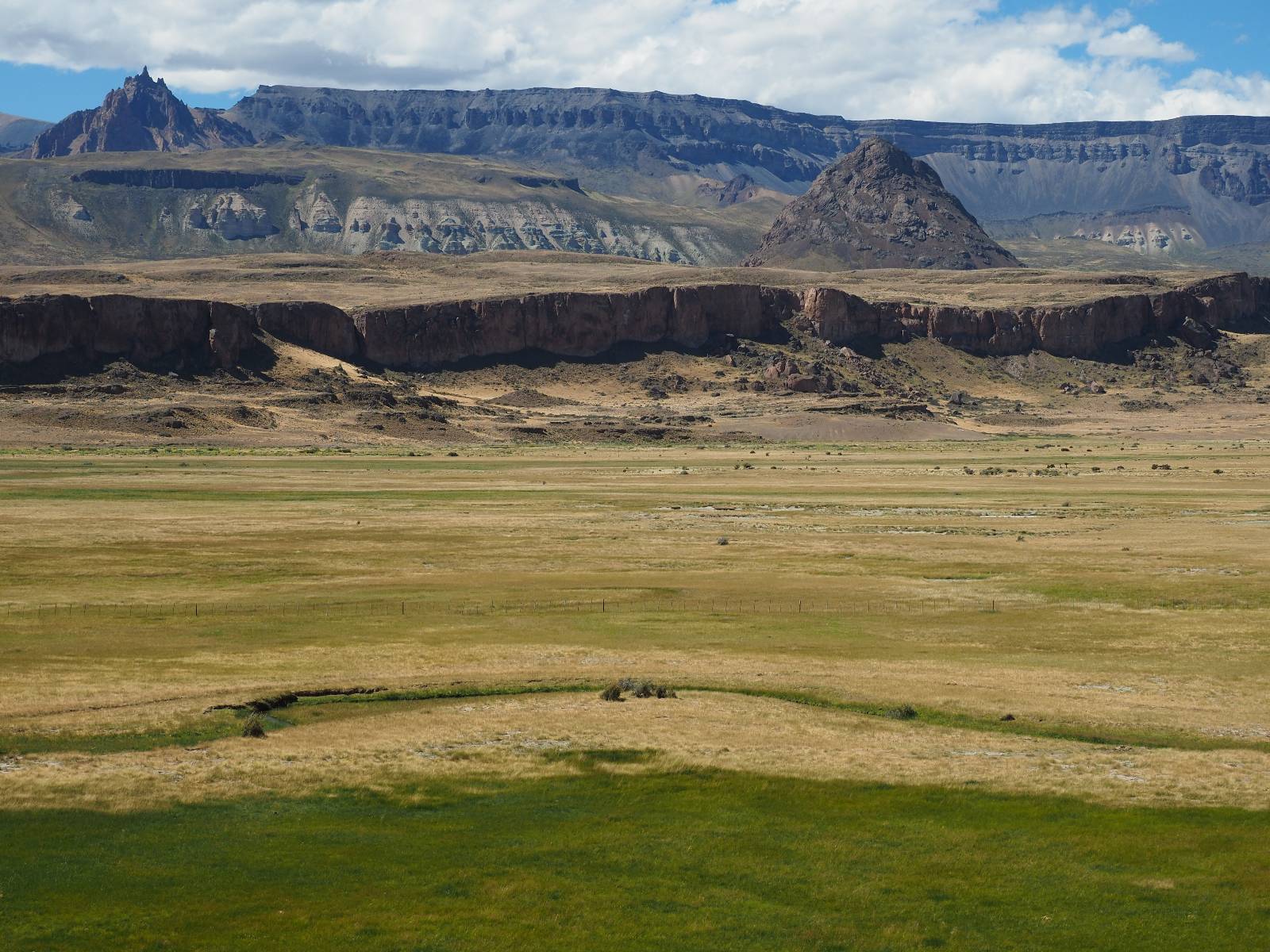 Aus Coyhaique raus ist die Landschaft recht sanft hügelig, ein paar leichte Kurven und schönes Wetter und es macht schon wieder Spaß! Bald geht es wieder in die Berge gehen, was meist mehr Kurven und noch schönere Bergansichten bedeutet! Mein Ziel ist Puerto Rio Tranqillo mit seinen Marmorhölen aber bis dahin ist es noch ein Stückchen! Nach dem Hügelland und den Bergen öffnet sich ein weites schönes Tal und ich nutze das nächste Dorf, um eine Futterpause zu machen mit herrlichem Blick auf den Cerro Castillo. Im selben Restaurant halten auch zwei Familien die ich vom sehen von der langen Fähre kenne. Aber auf der Carretera Austral trifft man sich wahrscheinlich immer mal wieder. Aus dem Dorf raus über eine kleine Brücke erspähe ich aus dem Auge heraus eine kleine Confluencia und drehe um, weil ich denke es könnte ein schönes Fotomotiv sein. Die kleine Schlucht bietet sich auch an, um die Drohne durchfliegen zu lassen. Aber was ist das denn nun wieder!? Sie ist mal wieder in Höhe und Weite eingeschrängt! Ich kenne das schon, da hilft wohl erst wieder ein Update! Zumindest habe ich noch nicht herausfinden können, wie ich das anschalten kann!? So bisschen kriege ich doch drauf, mache noch ein paar Fotos und fahre weiter. Aber nicht sehr weit! Ein großer Aussichtspunkt lockt, mit einem irre weiten Blick über das vor mir liegende Tal und rüber in die Crdillera Castillo! Zuerst treffe ich einen Mopedfahrer aus Columbien, mit dem ich etwas schwätze und als er abgefahren ist kommt Matthis aus Deutschland. Letztendlich haben wir beide das selbe Ziel fahren aber unseren eigenen Stiel. Der zwischenzeitliche Asphalt geht wieder in Schotter über und es Staubt ordentlich!!