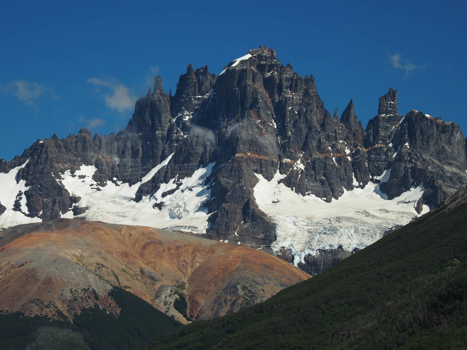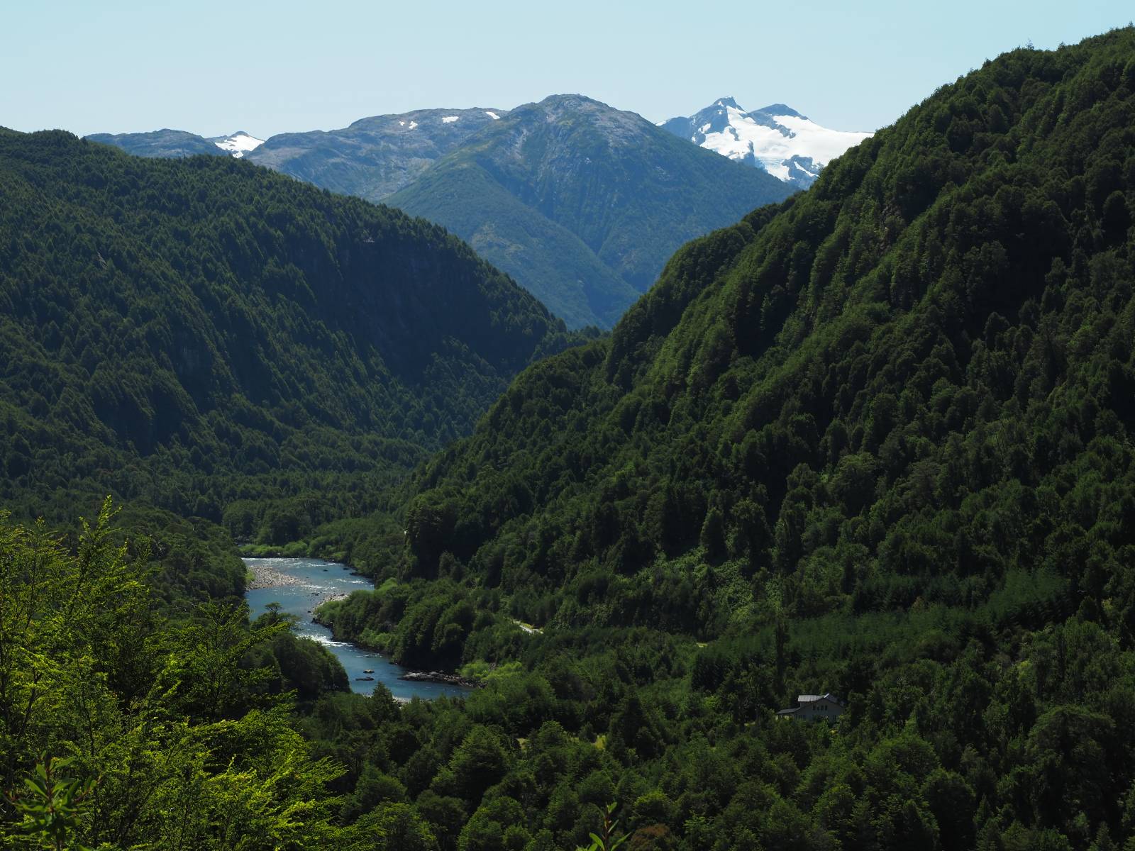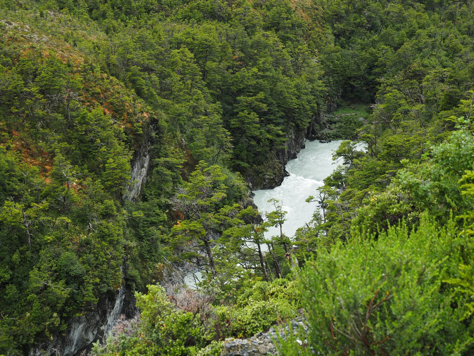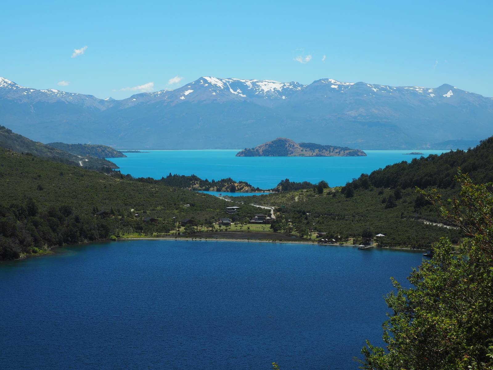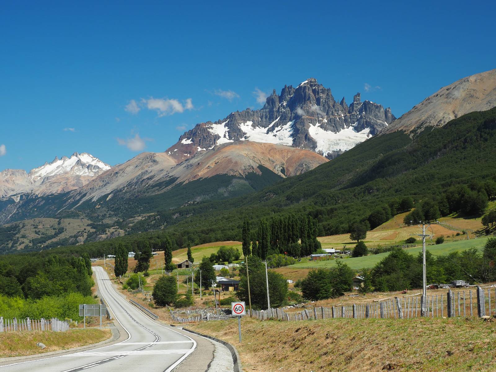 Schon bald fahre ich entlang des Rio Baker, der mit der selben blauen Farbe zu meiner Rechten dahinfließt. Ich zaudere anzuhalten oder nicht…, fahre aber durch, bis ich zum Parkplatz für die Confluencia von Rio Baker und Rio Neff komme. Ich muß ein Stückchen laufen aber es lohnt sich definitiv! Es ist eine wirklich große Stromschnelle, mit der sich der Rio Baker in den etwas schlammigeren Rio Neff ergießt aber gerade dieser Farbunterschied und die Wildheit des Flußßes macht das ganze Schauspiel unwahrscheinlich beeindruckend! Ich fotografiere wie wild, filme und lasse die Drohne fliegen und genieße natürlich auch so das Schauspiel. Die Sonne scheint und es ist ein herrlicher Tag, für den ich mal wieder sehr dankbar bin! An einer passenden Stelle etwas oberhalb erfrische ich mich im Rio Baker und trinke einen Schluck, auch auf die Gefahr hin Schlumpffarbe anzunehmen! Ein Ehepaar aus Argentinien fragt, wo ich her komme und so plauschen wir ein wenig und ich bekomme das Kompliment, das mein Spanisch sehr gut wäre. Hahaha! Ich nehme es gerne an als Motivation aber ich weiß, dass es nur sehr rudimenter taugt! Dafür kann der Herr tatsächlich ein paar Brocken Deutsch! Und so kann ich zurückloben. Der restliche Weg führt mich bis Cochrane, wiederum mit tollen Ausblicken und ein paar doofen Baustellen wo man schon mal 10-15min stehen muß. Das macht es nicht unbedingt gemütlich bei der Wärme und dem Staub, der von den Entgegenkommern aufgewirbelt wird. Vor mir steht ein Paar aus Argentinien mit ihrer R1000 und füllt Dichtmittel in den Hinterreifen und pump ihn noch weitestgehen auf. Ich frage, ob ich helfen kann aber sie wollen es so bis Cochrane schaffen. Ich bleibe eine Weile hinten dran, fallls es doch nötig wäre aber kurz vor Cochrane lasse ich sie ziehen und genieße noch einmal einen herrlichen Aussichtspunkt. Cochrane ist nicht wirklich spannend aber in guter Distanz als Zwischenstop mittendrin. Am ersten Hostal, wo ich anfrage ist alles belegt. lustigerweise sehe ich dort das Motorrad von Matthias stehen. Im Hostal schräg gegenüber werde ich fündig und quartiere mich ein.