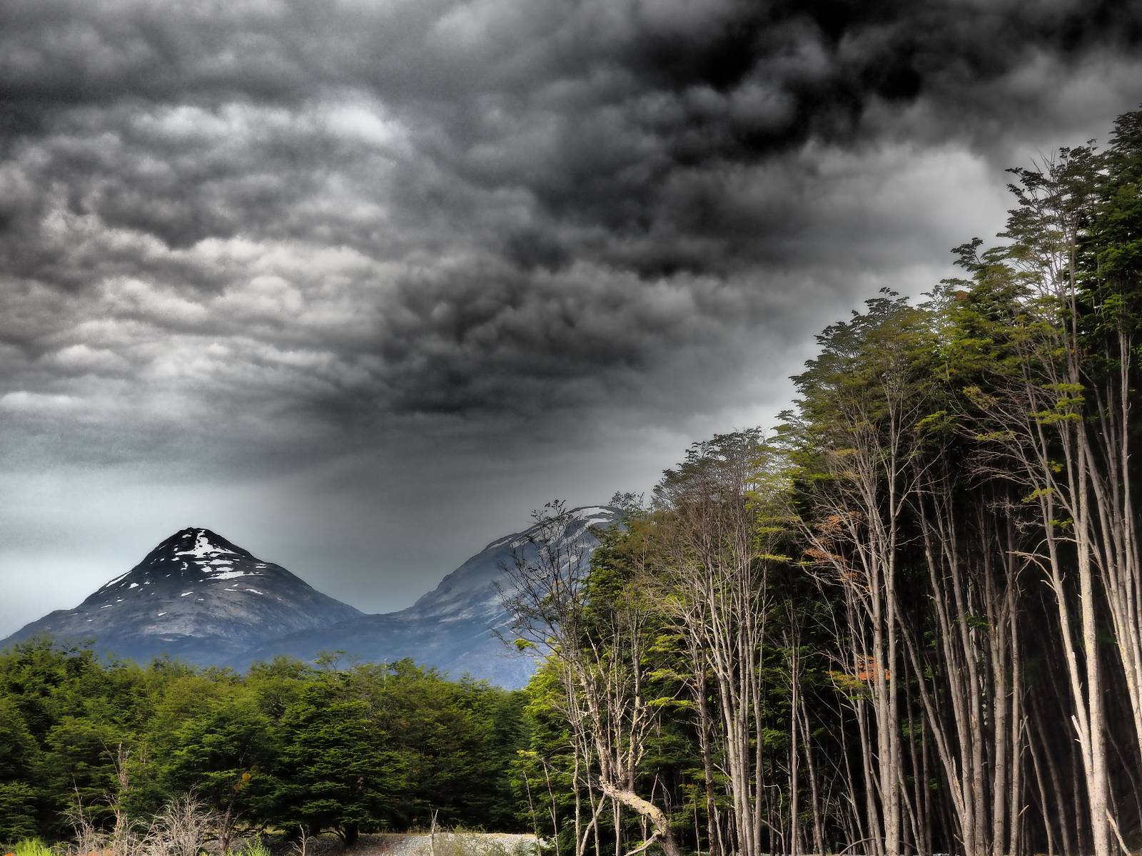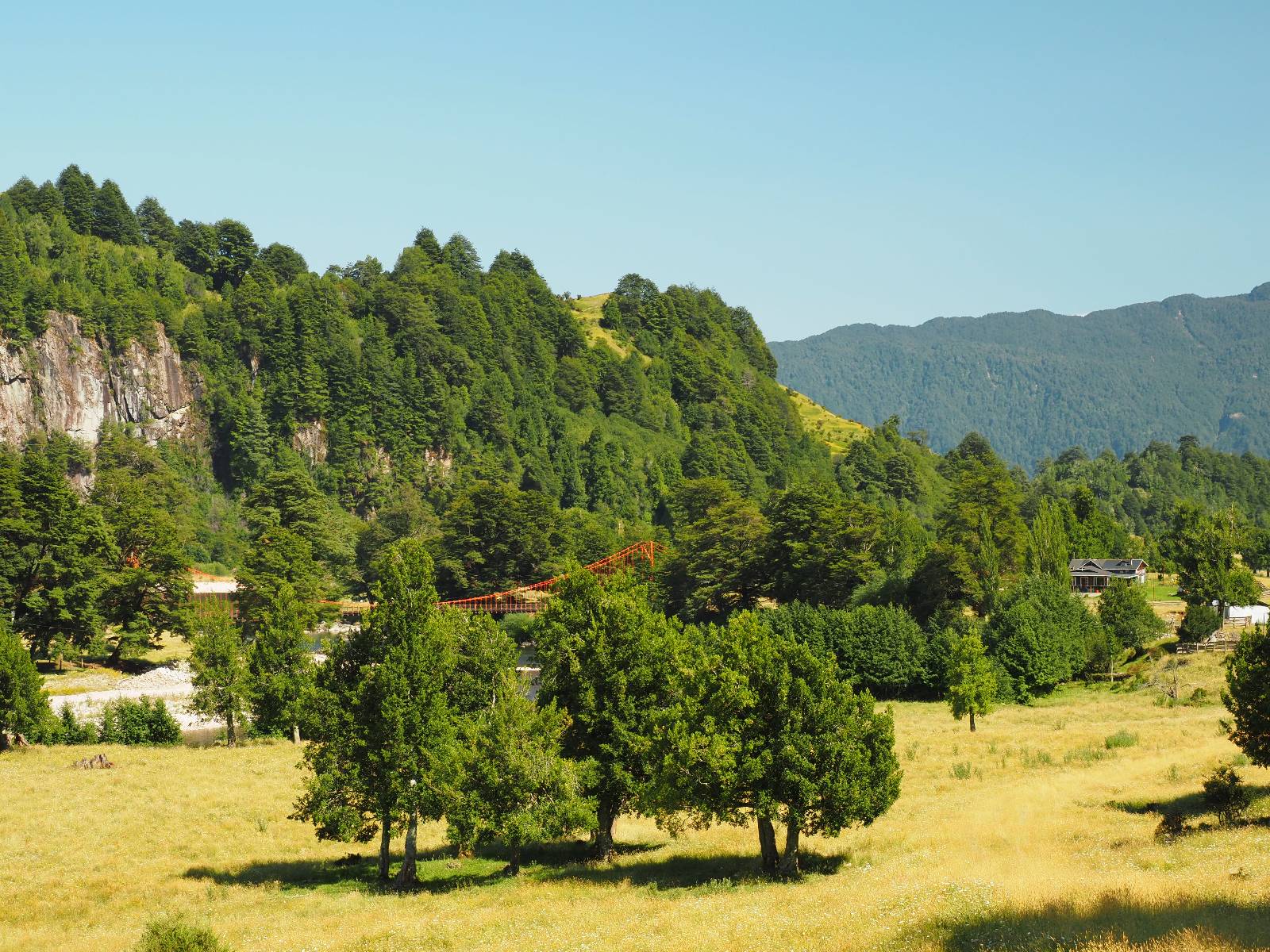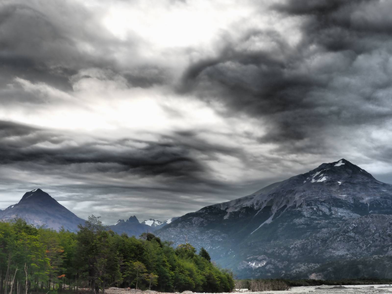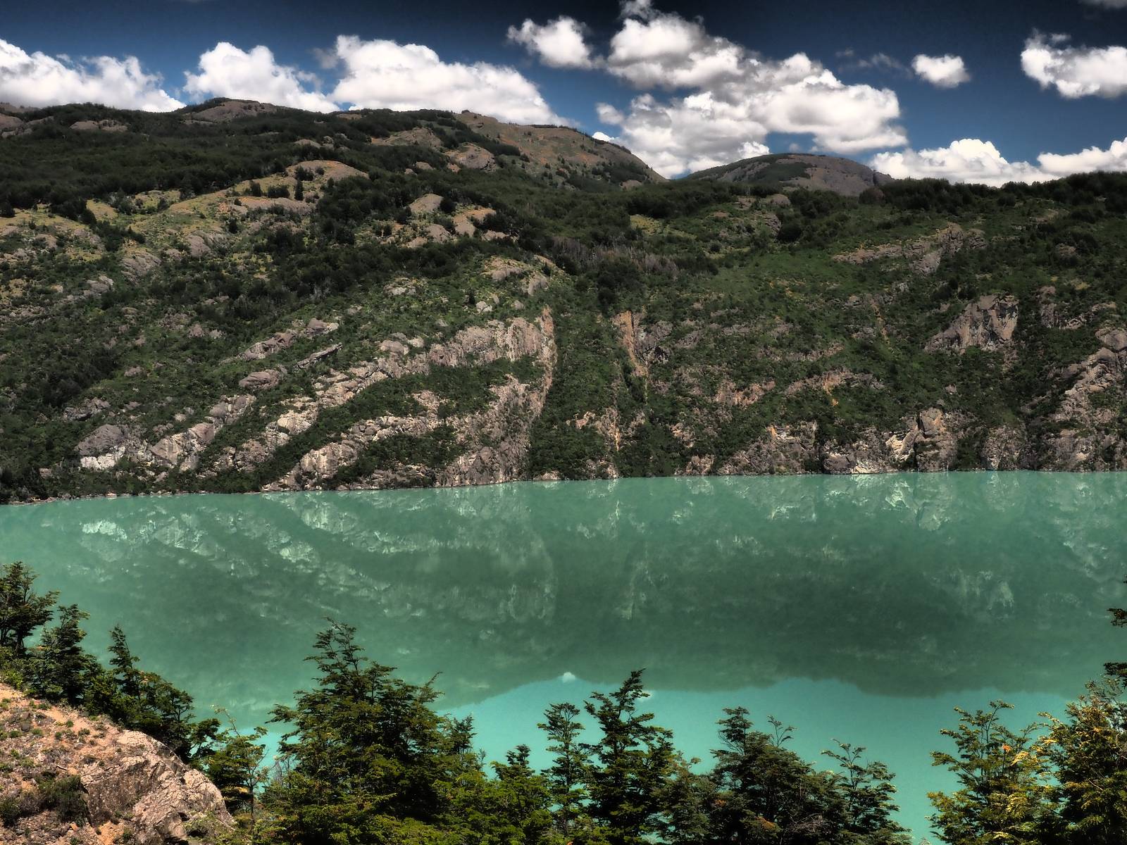 Es regnet in der Nacht und auch am Morgen als ich packe! Ich treffe noch einmal kurz Jose und Carlos. Die beiden wollen, geführt, mit einem Unimog durch den Fluß den ich gestern über die Brücke überquert habe. Ich bin neidisch! Später sehe ich einen kleinen Film! Wirklich cool! Es tröpfelt immer mal wieder und Feuchtigkeit hängt in der Luft aber wirklich nass wird es nicht. Dafür staubt dann auch die Schotterstraße nicht, was ich super angenehm finde! Zurück an der Fähre stehen nur noch zwei andere Motorräder und somit ist das Mitkommen, gleich mit der nächsten kein Problem. Ich komme mit eine Familienvater ins Gespräch. Ich hatte ihn mit seiner Familie in O’Higgins getroffen, als wir gemeinsam den Start einer Herkules vom dortigen Flugplatz beobachteten. Eigentlich können seine Kinder auch deutsch sagt er aber, sie ware dann doch zu scheu. Ich halte noch einmal in Cochrane im selben Hostal, um dann am nächsten Tag etwas nördlich über den wunderschönen Paso Roballo nach Argentinien zu wechseln und somit vorerst die Carretera Austral wirklich beende.
