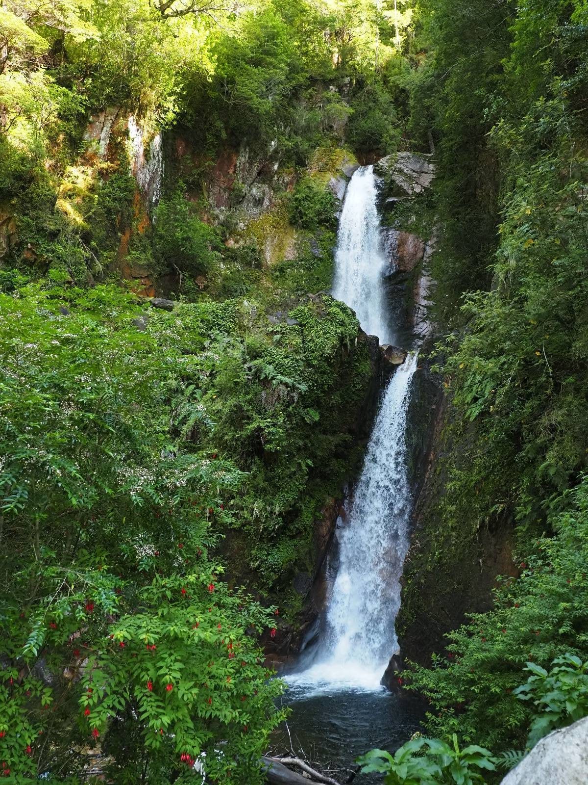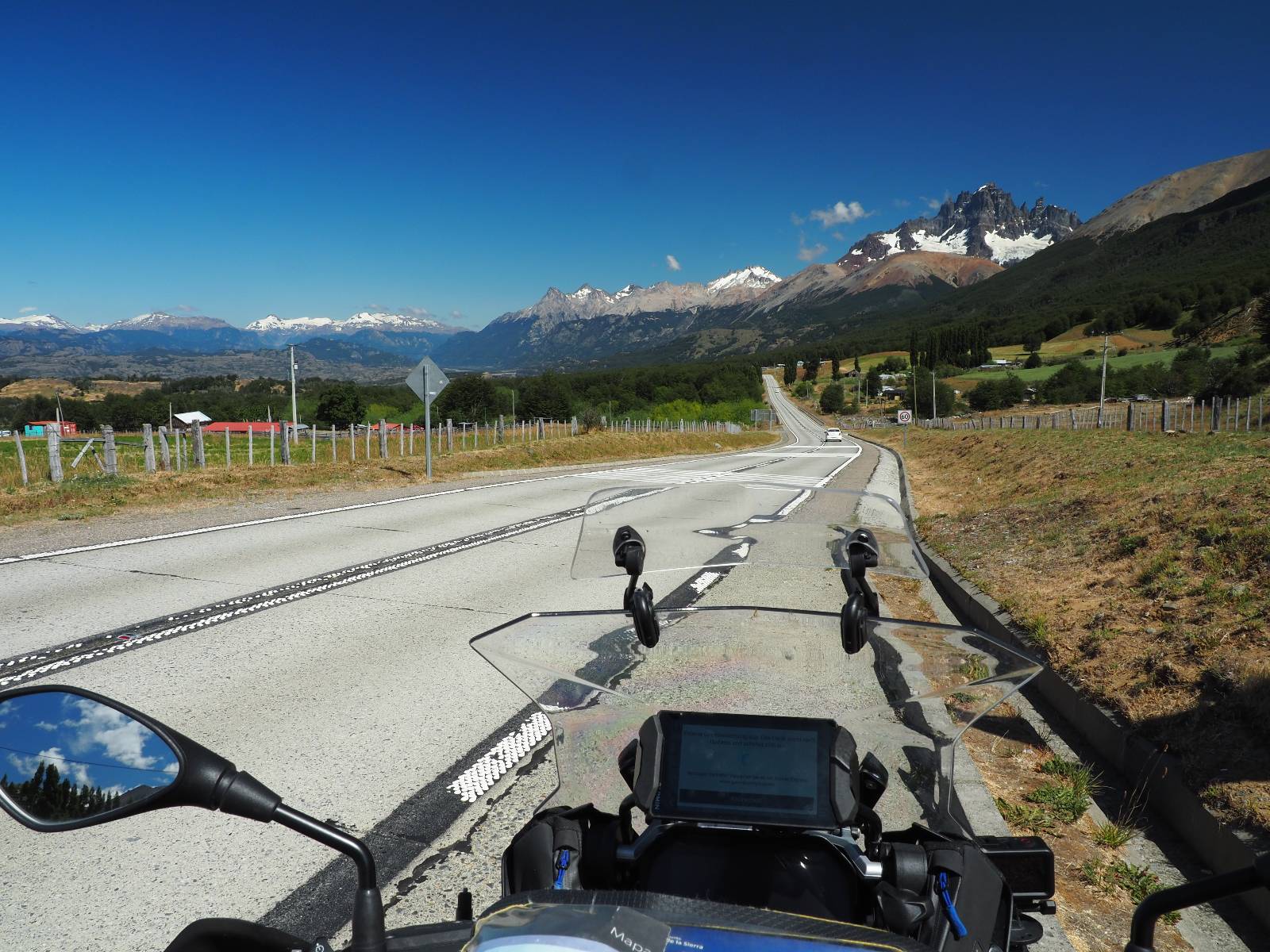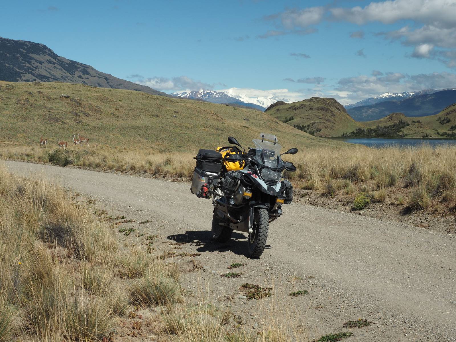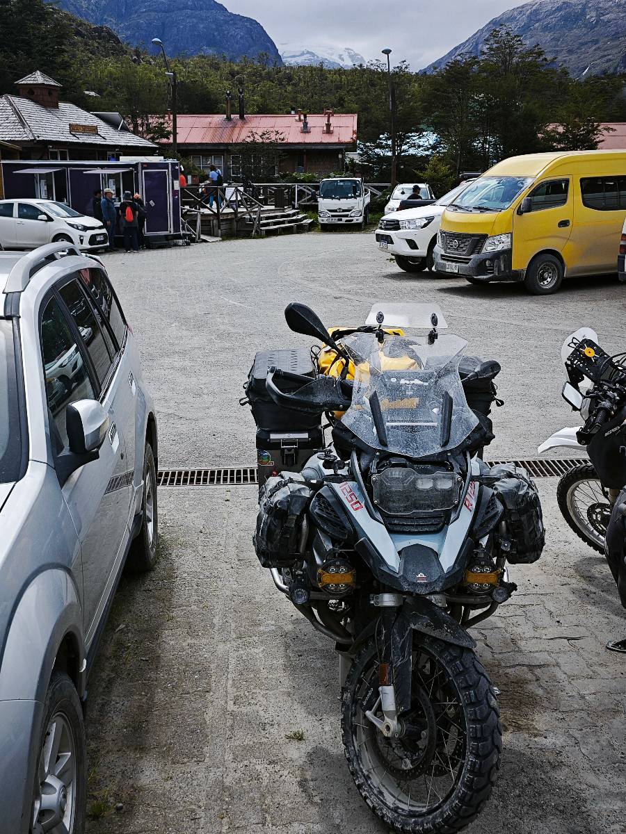 Der nächste Tag wird kurz. Das Wetter spielt immernoch ganz hervorragend mit! An einem kleinen Wasserfall, als ich gerade los will fähr ein Motorrad mit Luxemburgischen Kennzeichen ein. Ich unterhalte mich super nett mit Steffi und Pascal und wir tauschen Instagram aus. Die beiden haben alles verkauft und sind losgezogen! Beide auf einer Maschine und die vollgepackt! Ich glaube sie haben zusammen, so viel wie ich, …na gut etwas weniger… In einem ihrer nächsten Videos sehe ich Pascal einen heißen Weely mit ihrem Panzer hinlegen und bin etwas neidisch! Gegen Mittag treffe ich in Coyhaique ein, einer doch recht großen Stadt. Aber ich habe hier nichts besonderes geplant, ich will eigentlich ein bisschen Maintenance betreiben. Ein paar Löcher in den guten Merinosachen müssen gestopft werden, beim rechten Handschuh ist eine Naht auch etwas offen, ich will schauen, daß ich ein paar neue Hosenträger bekomme, da die alten nun doch arg ausgeleirt sind und schaue doch noch einmal nach einer Regenjacke für über die Motorradjacke. Letzteres gestaltet sich schwierig. Es gibt in den diversen Motorrad und Outdoorläden zwar ganz gute dünne Modelle, die meinen Vorstellungen entsprechen würden, aber nicht in der 2XL oder sogar 3XL Größe, die ich bräuchte. Spät am Abend, kurz vor Ladenschluß werde ich doch noch fündig. Da der Laden um die Ecke vom Hotel ist, hole ich sogar noch die Motorradjacke und teste aus, ob es funktiuonieren würde. Gerade so! Aber für den Notfall und Dauerregen ok!