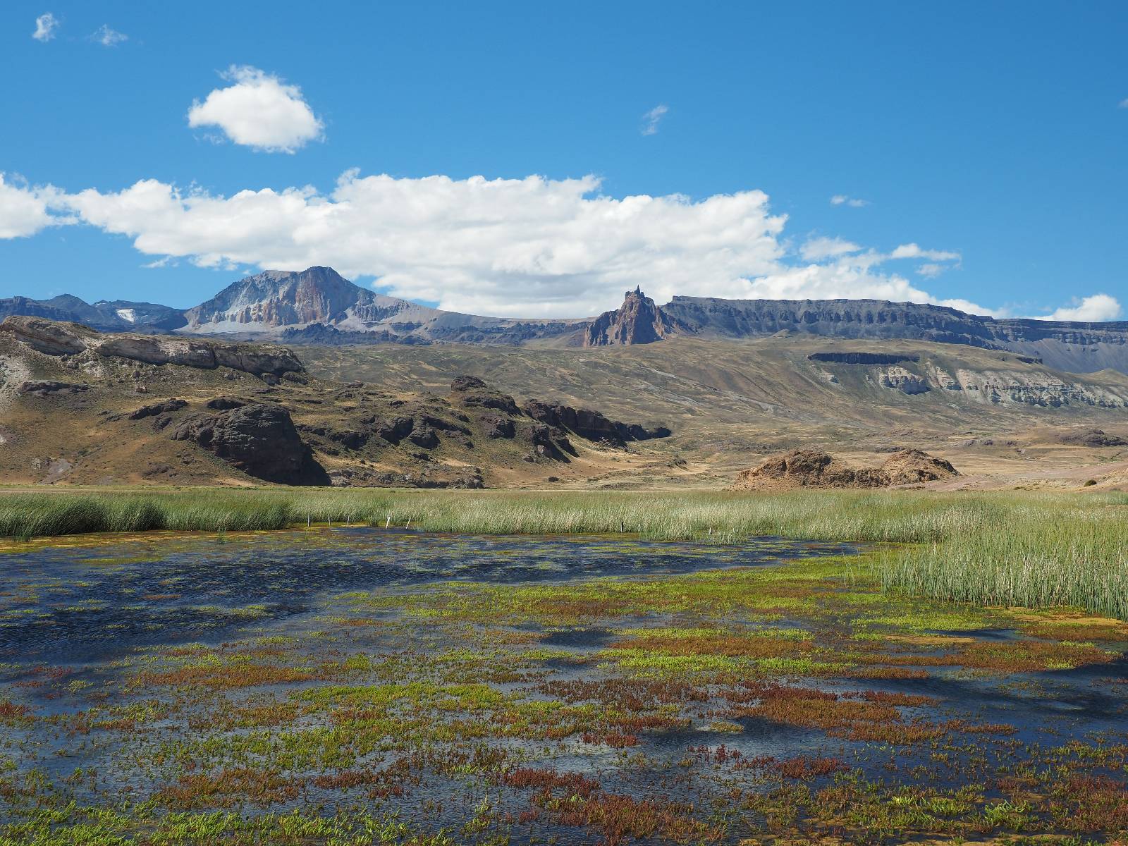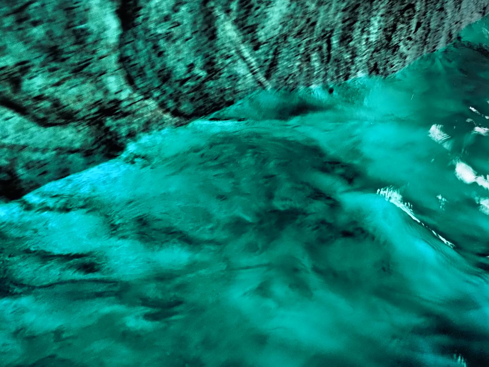 Ich wäre fast dran vorbeigerauscht aber links von mir liegt der Lago Verde! Und der beeindruckt mich, dass ich die Straßenseite wechsel und anhalte! In einem unbeschreiblichen milchig hellem Türkis ohne auch nur einem Hauch einer Welle liegt er da und macht einen völlig surrealen Eindruck! Mir kommt es vor, als ob jemand eine riesiege Glasscheibe drauf gelegt hat oder sich die Fläche gleich teilt und 007 mit einer Rakete rausgeschossen kommt! Ein Ehepaar hat meine Deutsches Kennzeichen erkannt und so plauschen wir einen Augenblick, Matthias kommt hinter mir vorbeigefahren und ein Tanklastzug wirbelt unmengen an Staub auf. Ich habe genug Fotomaterial und fahre weiter.