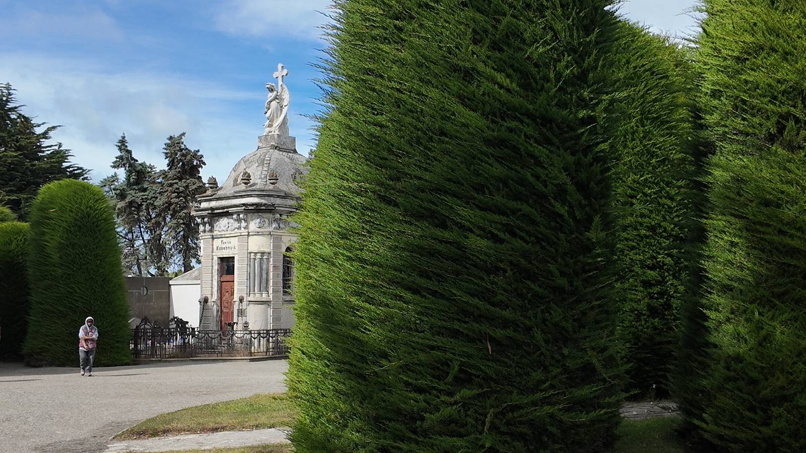 Ich hatte die Fähre von Porvenier nicht bekommen und nehme wieder den langen Bogen nach Punta Arenas. Diesmal finde ich ein Hostal auf der anderen Seite vom Zentrum. Carmen gibt mir ein kleines Zimmer mit Gemeinschaftsbad, da ich aber scheinbar alleine hier bin, beziehungsweise andere ihr Bad im Zimmer haben ist das ganz in Ordnung so. Carmen ist Rentnerin, ganz nett und gesprächig und gibt mir ein paar gute Tips, was ich hier in Punta Arenas noch so anstellen kann! Zudem hat das Motorrad quer über die Straße einen guten Stellplatz in ihrem Garten. Scheinbar ist der Friedhof hier eine ganz interessante Atraktion, den ich mir anschauen will. Ein weiterer wichtiger Punkt ist, ich brauche Wanderschuhe! Meine guten Hanwags hatten in Ushuaia zwar soweit durchgehalten an der Laguna Esmeralda und hoch zum Gletscher, wofür ich echt dankbar war aber bereits auf dem Rückweg merkte ich, dass es wieder losgeht und sich die Sohlen lösen. Sie hatten auch echt was mitmachen müssen aber eine weitere ähnliche Tour würden sie nicht schaffen! Und ein drittes Mal kleben…??? Nein, irgend wann wüden sie sich unterwegs lösen und das wäre eine Katastrophe! Nach Hause schicken, dann einschicken und reparieren lassen, da kann ich auch Neue kaufen. Schweren Herzens hatte ich sie als in Ushuaia im B&B gelassen, die beiden wollten sie eventuell einfach rausstellen, so dass sie sich noch jemand mitnehmen kann. Sie hatten mir auch empholen, neue Schuhe in Chile zu kaufen, da Argentinien doch teurer sei! Nun also hier in Punta Arenas. Carmen erzählt mir, dass es am anderen Ende der Stadt die Zona Franca gibt, eine Zollfrei-Area, wo ich wahrscheinlich günstig bei Balfer einem großen Outdoorladen, fündig werden könnte. Ich verbinde beides und gehe zu erst über den Friedhof. Schon wirklich interessant zu sehen, wie viele Nationen und bekannte Leute hier bestattet sind und all die Varianten, von Gräbern, bis riesige Gruften ist alles vertreten. Die Zona Franca ist weiter draußen und gleicht mehr einem Industriegebiet mit vielen großen und kleinen Geschäften. In dem recht großen Balfer haben sie meine Größe nicht. Zu Hause haben sie sie oft nicht weil jeder die hat, hier scheint es etwas groß ztu sein. Na gut, ich suche weiter und werde letztendlich in einem wesentlich kleineren Geschäft fündig. Die Schuhe sind nicht ganz meine Vorstellung aber sie scheinen ganz gut zu passen und werden hoffentlich ihren Zweck erfüllen. Allerdings ahne ich, wo es Probleme geben könnte. Der Preis, von ca. 80,- heute im Angebot für rund 40,- EUR, ich werde sehen wie gut sie sind.