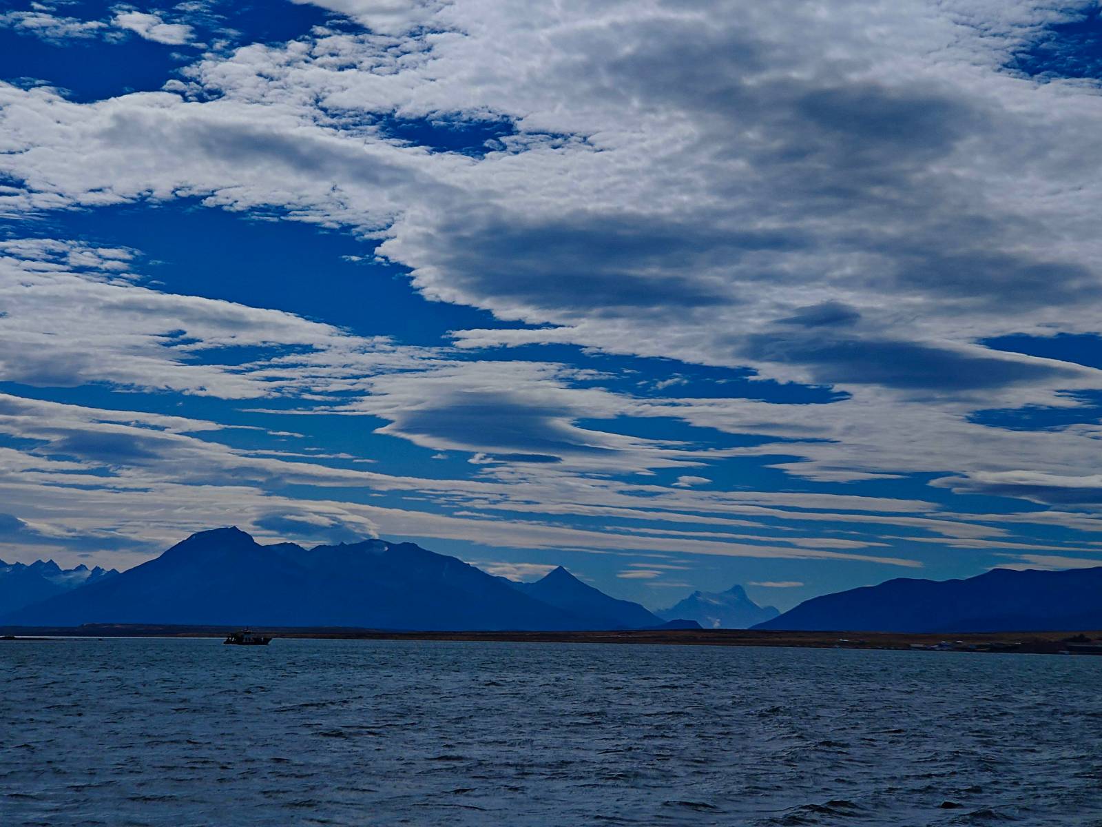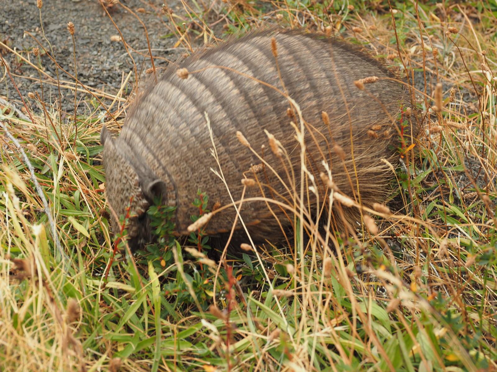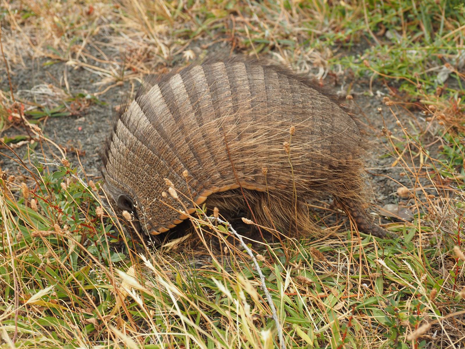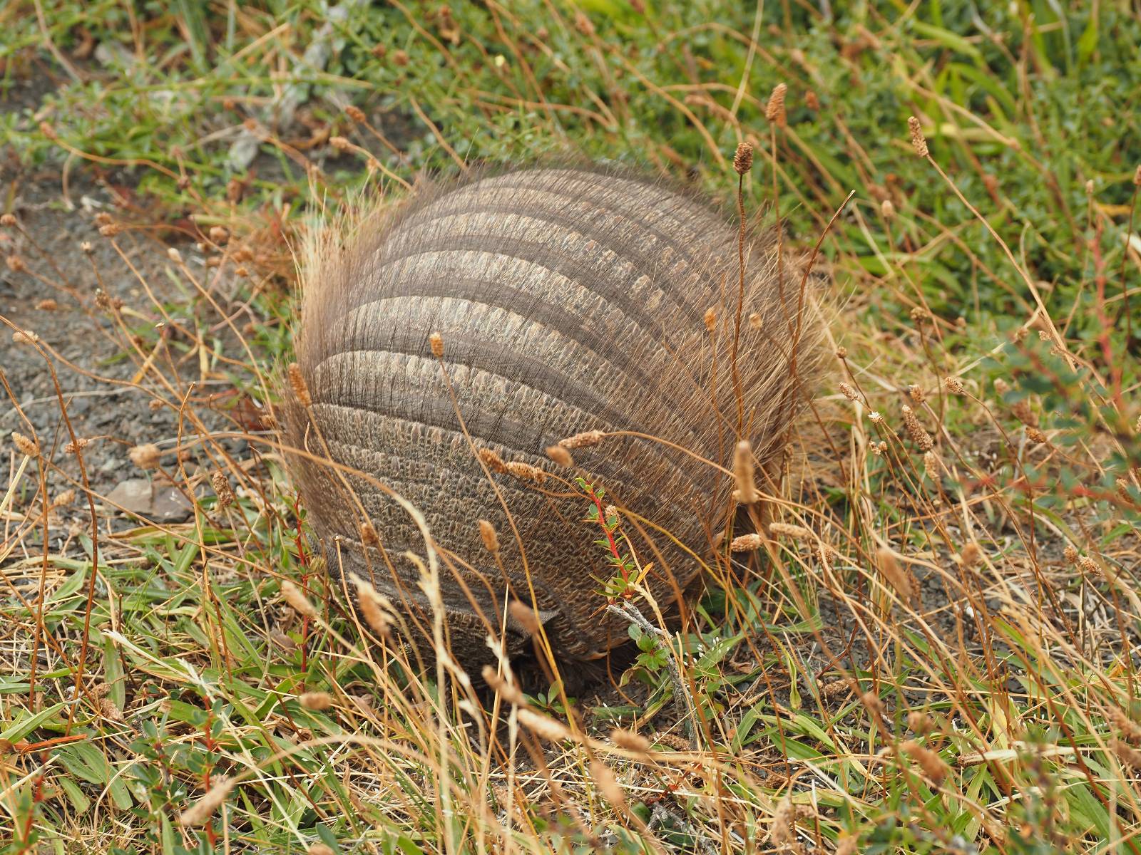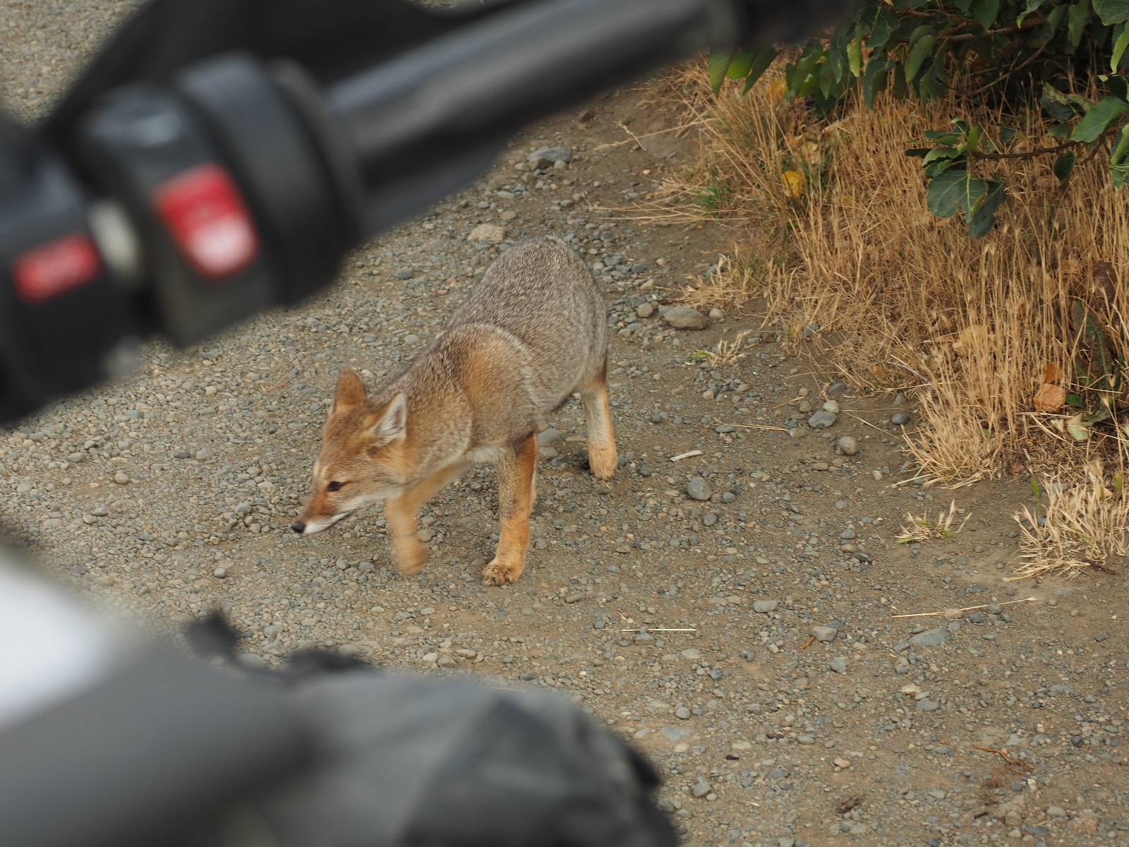 Ich mache ein leichtes Frühstück, mit Banane, Avocado, ein paar Nüssen und einem Powerriegel und baue mein Zelt ab, packe zusammen und mache mich weiter auf den Weg. Aber nur wenig weiter gibt es noch einen Aussichtspunkt, der zwar ca. eine Stunde vom Parkplatz weg liegt aber noch einmal viel Näher an den Bergen dran ist. Ich entscheide mich auch hier wieder in voller Montur und gerüstet mit zwei Kameras, zusammen mit den üblichen Verdächtigen dorthin zu laufen. Gleich am Anfang gibt es noch einen ganz netten Wasserfall und nach tatsächlich fast eine Stunde bin ich hinten. Heute ist es etwas wolkiger aber wie üblich holen alle ihre Snacks raus, machen Pause und genießen den See und die Berge davor. Ich komme mit einem New Yorker etwas intensiever ins Gespräch. Er ist auf einem Mehrtages-Trip und hat sich den vorschlagen und die Planung von seiner KI erstellen lassen. Verrückt! Viel mehr wird heute also nicht passieren. Ich werde heute dann doch wieder die Seiten wechseln und einfach mal schauen wie weit ich komme. Aber auf einmal bleiben einige stehen und fotografieren auf den Weg. Als ich dazu komme sehe ich warum! Ganz seelenruhig spaziert ein Armadillo zwischen den Leuten hin und her und lässt sich bei seine Suche nach Käfern und Würmern nicht stören. Mal nicht so ein Feigling wie der Letzte, der gleich weggelaufen ist! Ich verlasse den Park, da wo ich vor zwei Tagen schon einmal mit dem Bus reingekommen bin. Im Grenzdorf Cerro Castillo, in dem großen Souvenierladen und Restaurant mache ich stopp, esse und trinke eine Kleinigkeit. und gehe gleich um die Ecke zum Zoll, meine Papiere abgeben, um ein paar Kilometer weiter von den Argentiniern neue Dokumente ausgestellt zu bekommen. Ein paar Füchse schleichen herum und hoffen wohl auf einen Leckerbissen. Aber meine Kekse und Riegel täten ihnen wahrscheinlich nicht so gut. Ich bin einmal mehr in Esperanza, tanke und und mache mich auf den Weg zum heutigen Ziel El Calafate. Und dann wird es dunkel am Horizont!