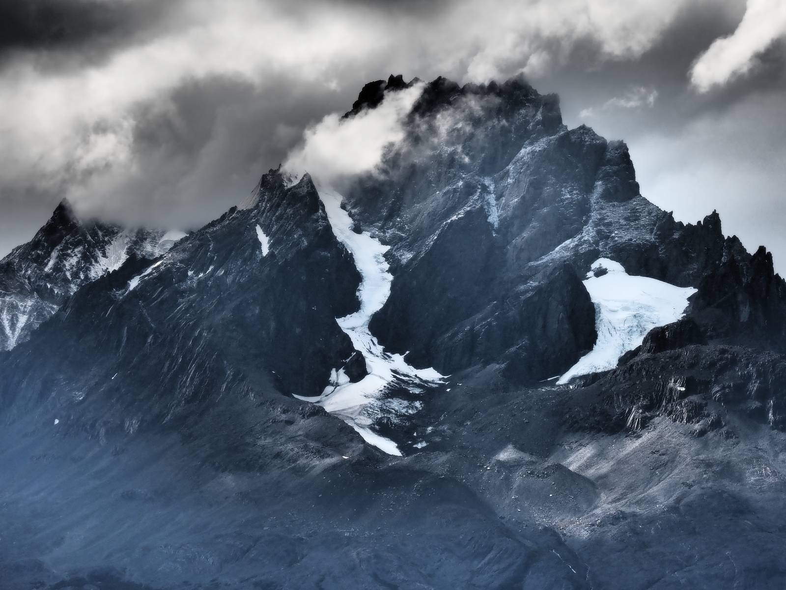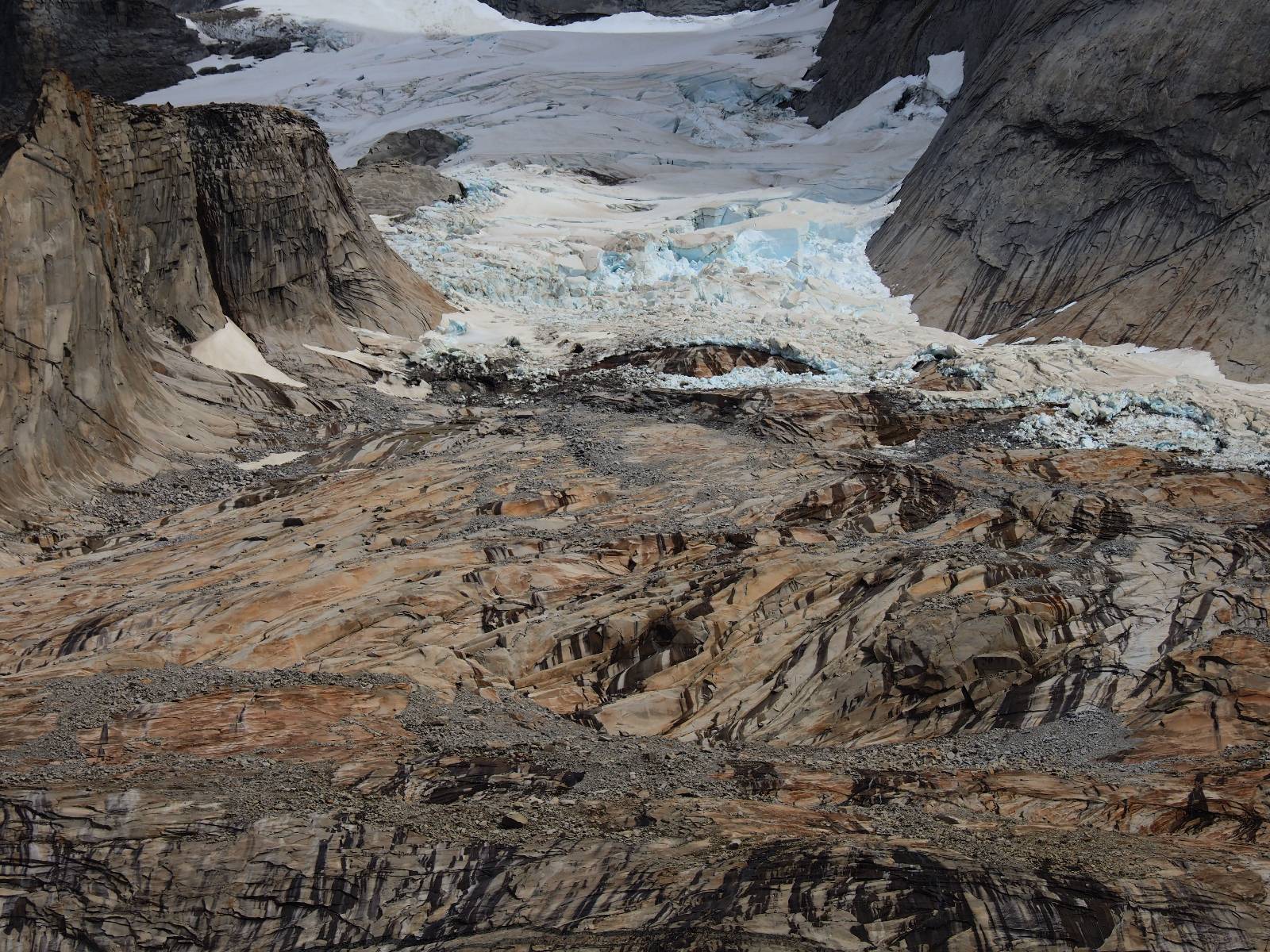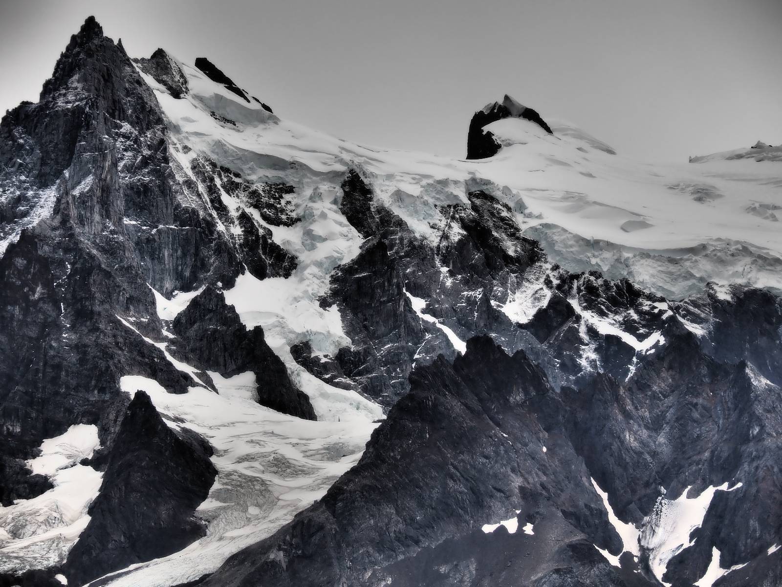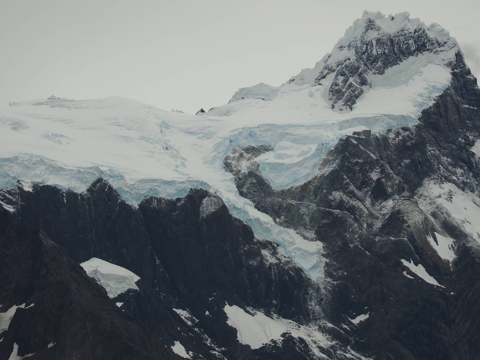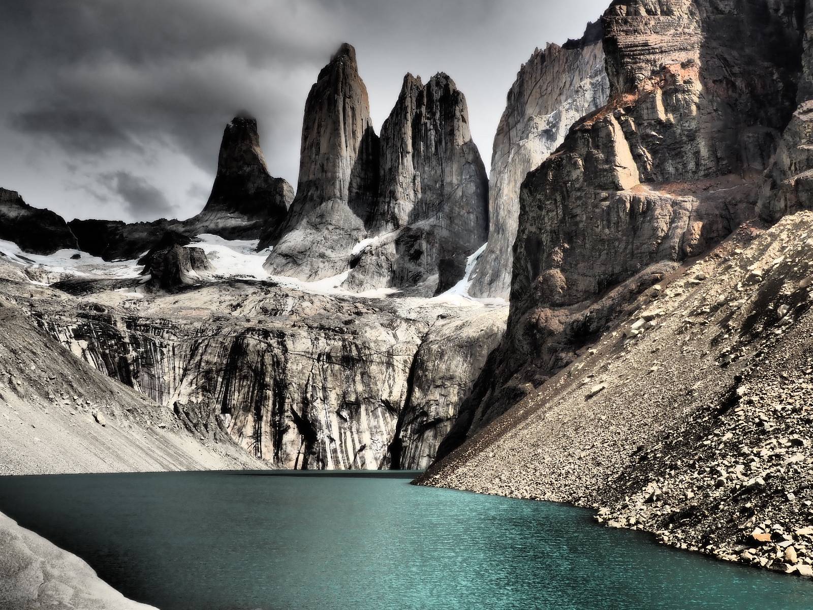 Tags drauf reise ich ab. Die Tour steckt noch etwas in den Oberschenkeln und der Wetterbericht sag so lala aber das Zimmer verlängern ging nicht mehr. Ich hatte mitbekommen, dass das Ticket vom Park drei Tage Gültigkeit hat und so will ich je nachdem, wie sich das Wetter nun entwickelt einmal von der anderen Seite aus durch den Park fahren oder vielleicht sogar eine Nacht drin verbringen. Ich begebe mich in die Spur, die mich am Milodon vorbei an den anderen Parkeingang führt. Ich darf mit meinem Ticket passieren und erfreue mich am herrlichen Anblick der Felsenformationen von der anderen Seite. Mir kommt es heute fast viel schöner vor, obwohl ich den Torres selber fast nicht sehe. Mein erstes Ziel im Park ist eine kleine fast Insel auf die man Laufen kann und von der aus man auf den weit dahinter liegenden Gletscher schauen kann. Ich lasse das Motorrad auf dem Parkplatz bei vielen anderen Ausflüglerautos und stiefle in voller Montur los. Das Wetter hat etwas aufgeklart und so mache ich mir vorerst keine Sorgen, dass es nass werden könnte. Über eine Art Strandstreifen stapfe ich zum Inselchen und dort vor bis zum Aussichtspunkt. Ok, ich kann den Gletscher sehen aber er ist wirklich noch weit weg!! Macht aber nichts! Die Sonne tut gut und macht warm und ich habe Zeit und kein sehr weites Ziel. Zumindest würde ich nur bis hinter den Park fahren und dort in dem kleinen Ort ein Bett für eine Nacht finden, sagt zumindest Google-Maps. Ich laufe zurück und mache Mittagspause im Restauran was direkat am Parkplatz liegt und überlege, wie ich nun weiterfahre. Der Tag ist nun doch schon etwas fortgeschritten aber vielleicht taugt ja der Campingplatz an dem ich einige Kilometer weiter vorbeikommen werde. Oder es ist auch wieder so etwas wie ich bereits gesehen habe, mit überteuerten Preisen.