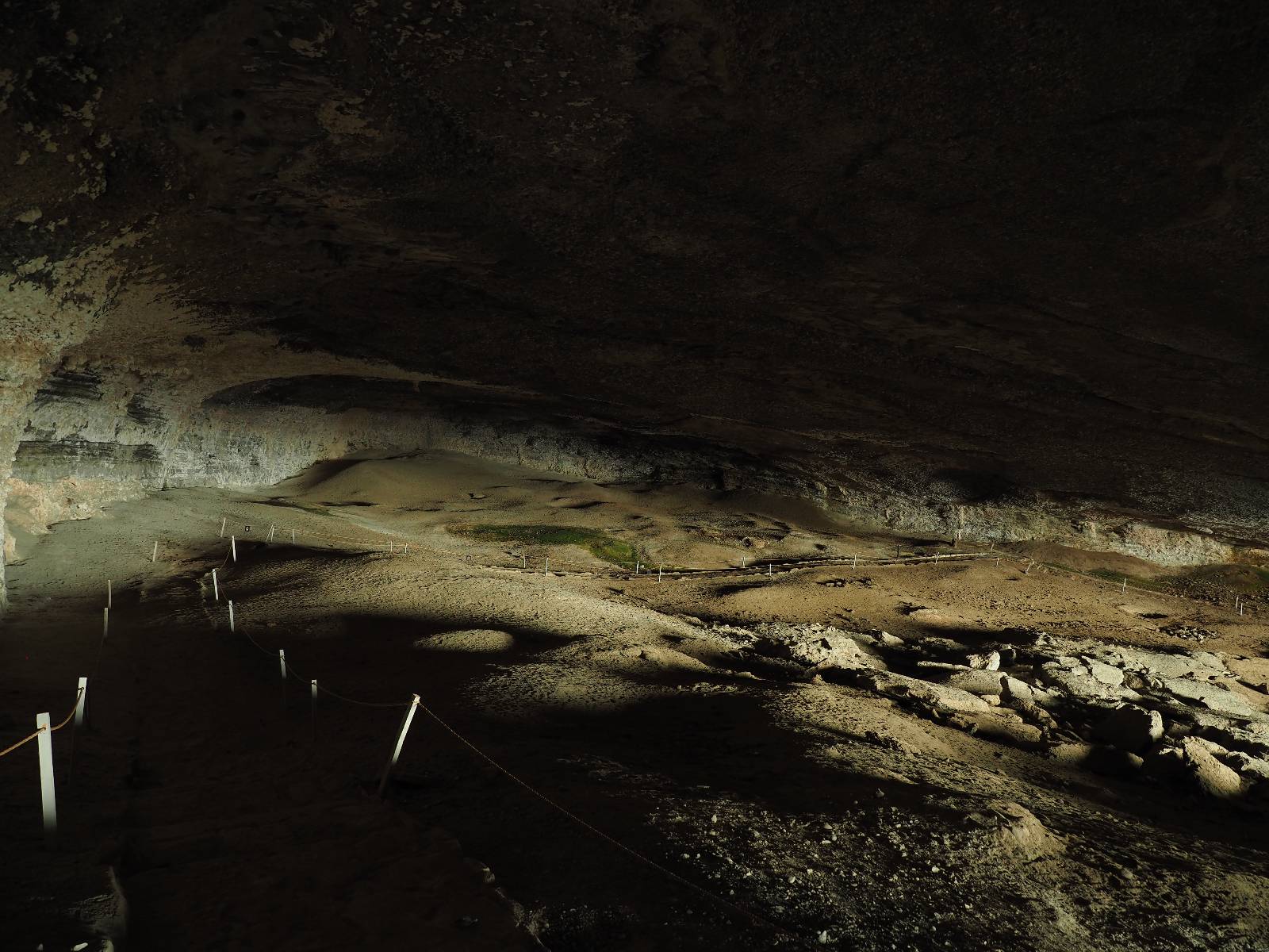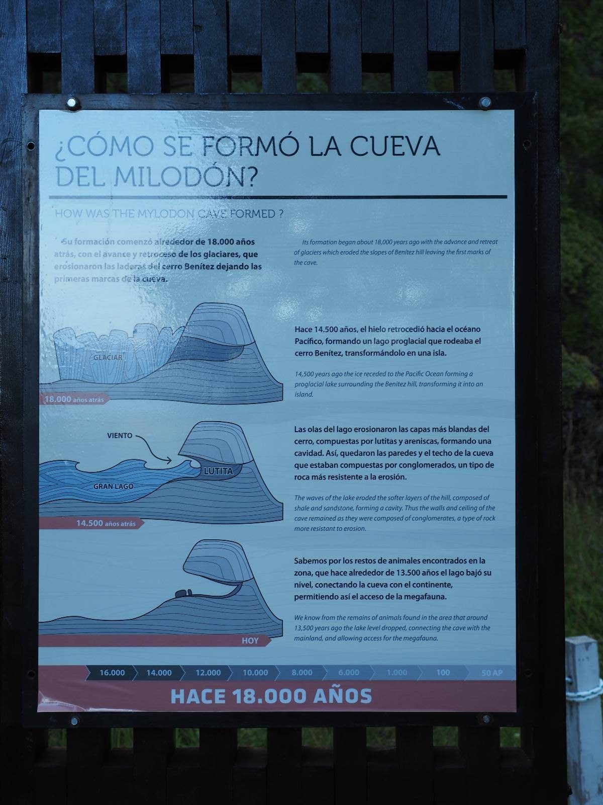Ein weiterer Tag geht mal wieder für die Arbeit am Rechner drauf und ich hätte ja mal noch die Austral Brauerei besuchen können aber das habe ich nicht so sehr auf dem Schirm. Im Prinzip reicht es auch, wenn ich die Sorten so probiere. Außerdem war Punta Arenas ja nur Zwischenstopp, um es nun ein erneutes Mal in Puerto Natales zu probieren. Diesmal sieht die Lage allgemein wesentlich entspannter auf Booking aus und so mache ich mich nach drei Tagen wieder auf den Weg. Ich hätte doch noch in Punta Arenas tanken sollen. Eigentlich sollte es reichen aber ich will einen kleinen Umweg nehemen, der ein Stück der R9 umgeht. Da ich aber entgegengesetzt schon gefahren bin weiß ich, dass es etwas weiter noch einen Tankstopp gibt. Das kostet mich so ca. 7km vom Abzweig bis zur Tankstelle aber für ein wenig Abwechslung nehme ich das in Kauf. Es ist mal wieder nicht der wärmste Tage und so gibts noch ein Muffin und einen Kaffee, bevor ich die 7km zurückfahre und Richtung Rio Verde abbiegen. Ich bereue es nicht. Anfangs ist die Straße noch asphlatiert, geht dann aber wie üblich irgenwann in Schotter über, wenn man etwas abseits unterwegs ist. Ich mache zwar keine Fotos aber es ist tatsächlich eine ganz nette Abwechslung! Der Bogen endet wieder auf der R9 und so geht es den bekannten Weg nach Puerto Natales. Ich habe mir ein Hostal an der großen Zufahrtstraße ausgesucht, an dem ich schon einmal geklingelt hatte aber letztens keiner aufgemacht hat. Diesmal habe ich mehr Glück, das Zimmer mit Bad und der Preis sind in Ordnung und im Hoft steht das Motorrad sicher. Jetzt muss ich mir also Gedanken machen, was ich mit dem Nationalpark Torres del Paine mache! Hotels im Park sind schweineteuer! Und selbst Camping scheint nicht billig zu sein, was ich bisher gelesen habe. Im Ort frage ich bei einer Agentur und Campingplatzanbieter, was ich für Möglichkeiten habe? Scheinbar ist es tatsächlich so. Ich könnte mir bei ihnen Ein Zelt mieten, mit Isomatte und würde dann so etwas mehr als 200,- EUR bezahlen. Das eigene Zelt zu benutzen geht scheinbar nicht. Irgendwie komisch aber das erklärt, warum viele die Touren in den Park mit Bussen von Puerto Natales aus machen. Um den Torres von nahen zu sehen, wird mir also nicht so viel mehr übrig bleiben. Die erste Tour mache ich aber selber mit dem Motorrad, zur Cueva des Milodon, die cirka 20km von Puerto Natales weg liegt. Das befindet sich auch der Cerro Benitez, der mir im ersten Hotel empfohlen wurde. Also mache ich mich mit unbeladenem Motorrad und in Wanderklamotten nach dem Frühstück auf den weg zur Cueva del Milodón. Das wird also auch der Tag für die erste Bewährungsprobe der neuen Schuhe! In der Höhle hatte man Knochen vom Milodón gefunden, einem Riesenfaultier, wobei ich die Höhle durchaus in ihren Dimensionen beeindruckender finde. Ich frage noch beim Eingang, ob es einen Weg auf den Cerro Benitez gibt aber sie meinen, das geht nur außen rum, die Straße zurück fahren bis zur Hauptstraße und dann weiter oben wieder einbiegen bis zu den Wanderwegen. Ich gehe nach der Höhle noch bis zum Aussichtspunkt und checke die Umgebung aber es gibt einen Zaun und der Weg ist auch nicht ganz klar. Auch MapsMe hat da eine Lücke.