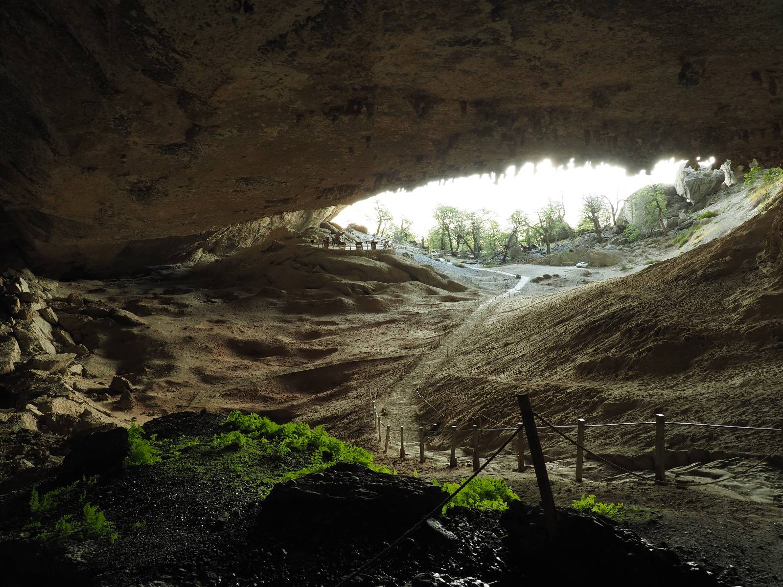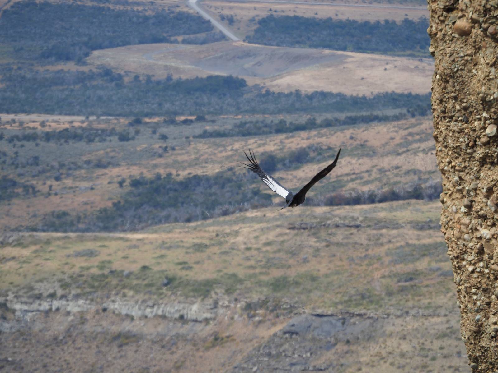 Was für ein Erlebnis! Aber nach fast anderthalb Stunden da oben trete ich den Rückweg an. Ich muß den Cerro Benitez ja wieder runter, über den Zaun und den Rest meiner Runde zu Ende gehen. Zwei Jungs die mir entgegenkommen fragen, wie weit es noch ist. Ich habe den Eindruck sie wollen kurz vor dem Top wieder umkehren. Ich erzähle ihnen, das es nicht mehr weit ist und wie herrlich die Condore dort geflogen sind! Ich habe immer noch ein Stück zu laufen und komme noch an einer Höhle vorbei in die ich hineinkrieche und anderen Felsen mit Malereien die schon tausende Jahre alt sind. Den Puma sehe ich mal wieder nicht aber das ist heute nicht schlimm! Ich hatte das Symbol der Freiheit heute live gesehen und das war sensationell! Der kleine Milodonpark hat noch andere kleiner Höhlen die ich hätte besuchen können aber dafür ist es nun zu spät! Es könnte heute sowieso nichts mehr die Condore toppen. Also auf nach Hause, warm duschen und in der Stadt schauen wo ich mich stärken kann!