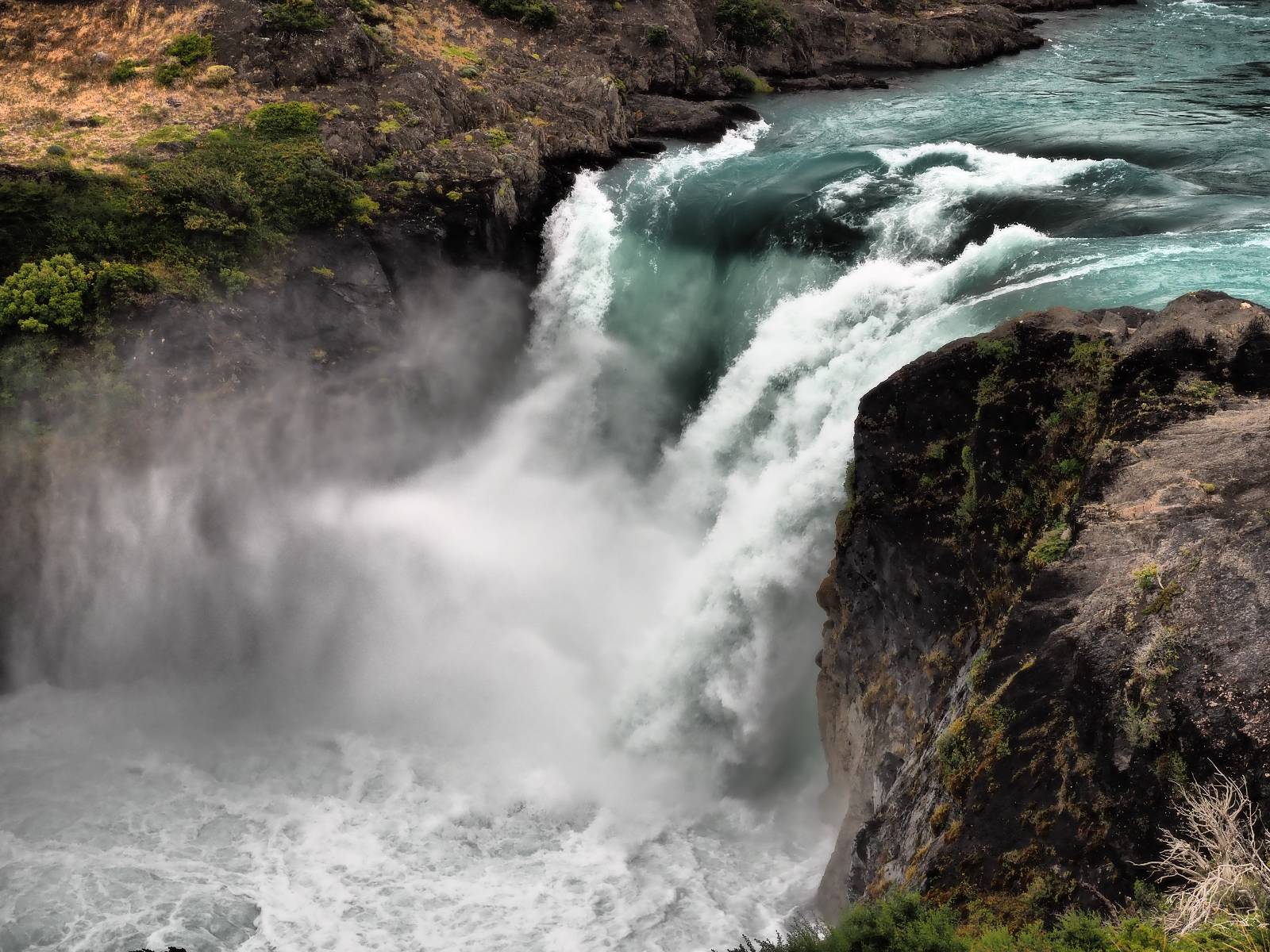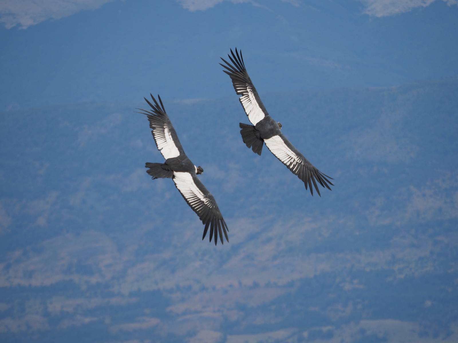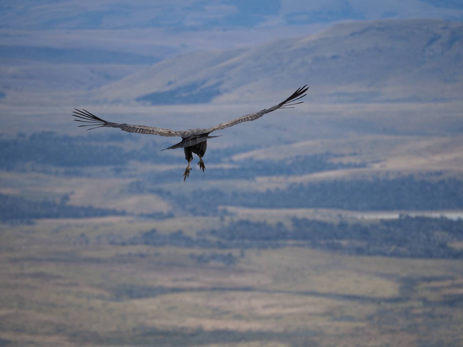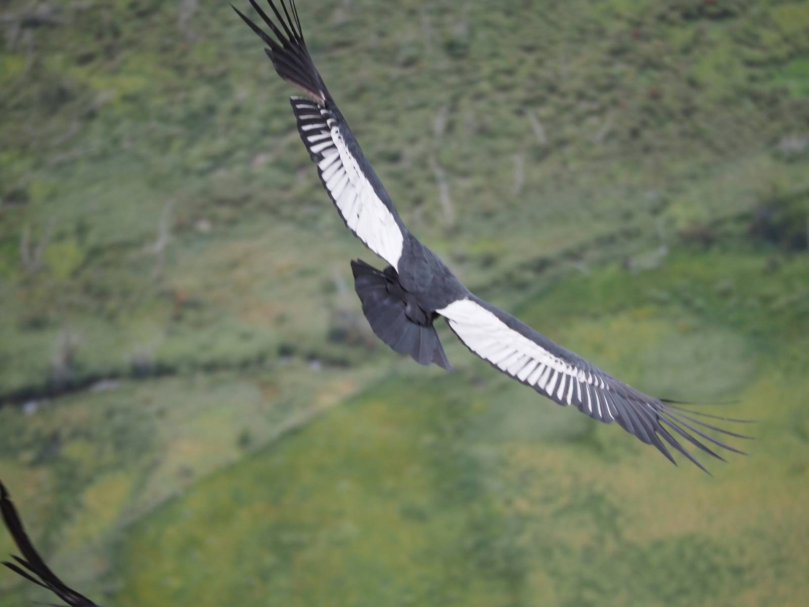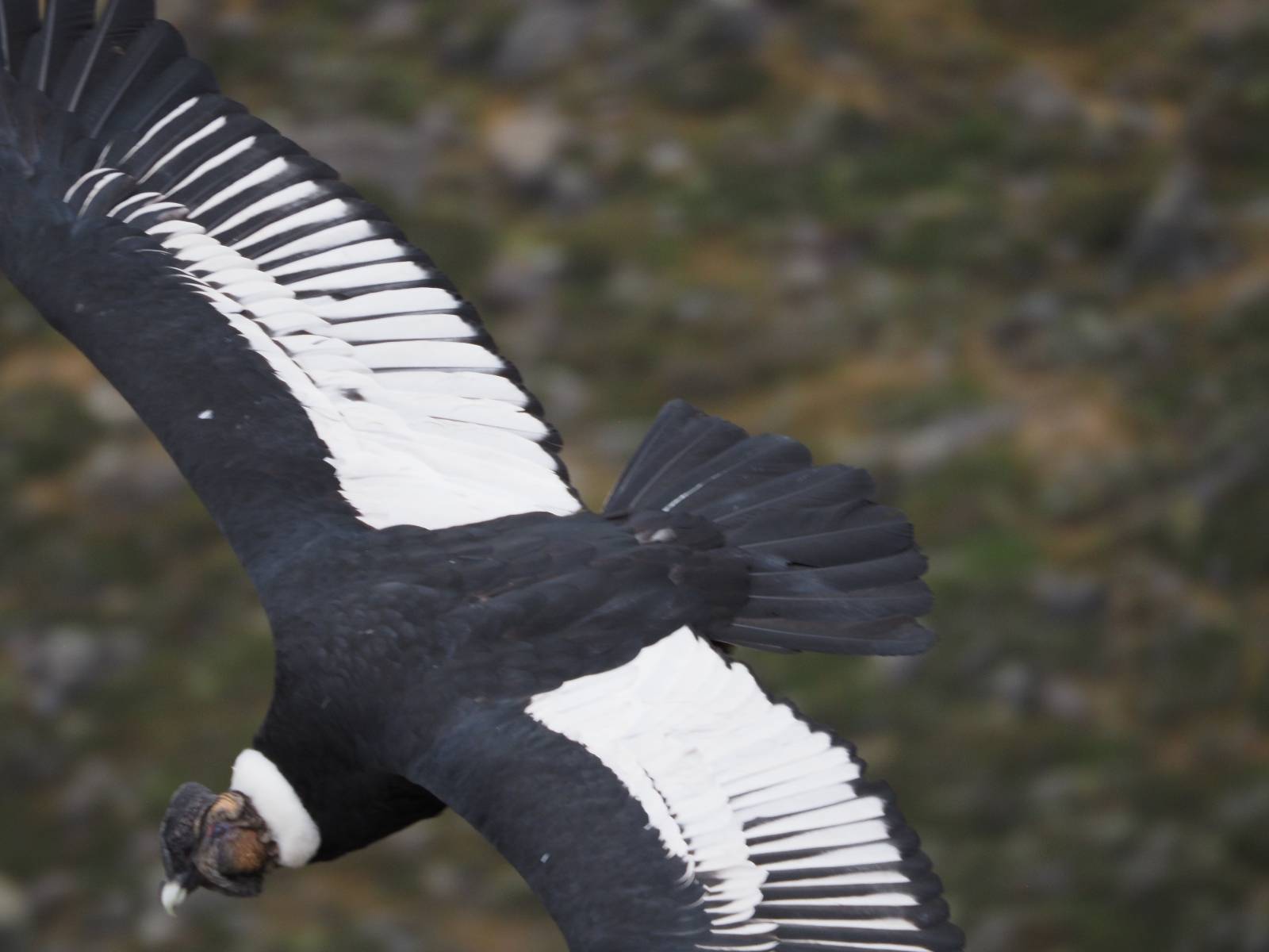 Ich denke ich muss mir das mal von nahem ansehen! Das Zäunchen ist zum Glück nicht hoch und bei meiner Schrittlänge kann ich auch so ganz einfach drüber steigen. Ich freue mich etwas schelmisch und dass ich nun doch auf den Benitez gehe auch wenn es jetzt noch einen schicken steilen Anstieg von ungefähr 30-40 Minuten gibt! Es ist tatsächlich anstrengend und ich schnaufe ganz ordentlich und ich merke meine rechte Ferse! Das war was ich befürchtet hatte! Ich habe schon immer das Problem das es da gerne drückt und gerade nun beim Aufwärtsgehen bekomme ich da ordentlich Druck. Es ist keine Blase die ich mir reibe, einfach nur Druck der unangenehm wird. Doch gleich habe ich es geschafft und der Schmerz ist vergessen! Was für eine irre schöne Aussicht hier oben und die Steilwand herunter auf den Lago Sofia! Ich packe die Drohne aus und lasse sie von mir wegfliegen, um die Dimension der Steilwand und die Landschaft drum herum zu filmen. Aber als wenn ich sie damit gerufen hätte tauchen plötzlich Condore auf. Nun bekomme ich widerum etwas Panik die Drohne wieder zu landen, ohne einen Unfall anzustellen. Es funktioniert aber ich vergesse dabei zu filmen. Aber macht nichts, jetzt die Kamera mit dem Tele und ich fotografiere wie wild, in der Hoffnung, wenigsten ein paar Condore gut zu erwischen! Was für ein Schauspiel! Wie krass sie so nahe an mir vorbeifliegen zu sehen! Ich war ja unten mit dem Pärchen schon beeindruckt aber das ist wirklich ein irres Erlebnis! Und wie groß sie sind! Dazu ihre Fluggeräusche, als wenn tatsächlich ein Flugzeug drüber weg geht. Ich bin hin und weg und etwas neidisch auf den Typen neben mir, der mit einer viel größeren Wumme draufhält! Der hat sicher geile Fotos!! Von ihm erfahre ich auch, daß die kleine Höhle von vorhin, das Nest von dem Paar war. Ein junger Condor will sich nur wenige Meter vor mir auf die Felskante setzen, merkt es aber und startet wieder durch. Aber da kann ich tatsächlich seine Größe etwas abschätzen. Sie werden bis ca. 120cm groß mit Spannweiten bis zu 320cm! Das glaube ich nun gerne…! Die Männer sind übrigens die mit mehr Gehänge…, am Kopf!