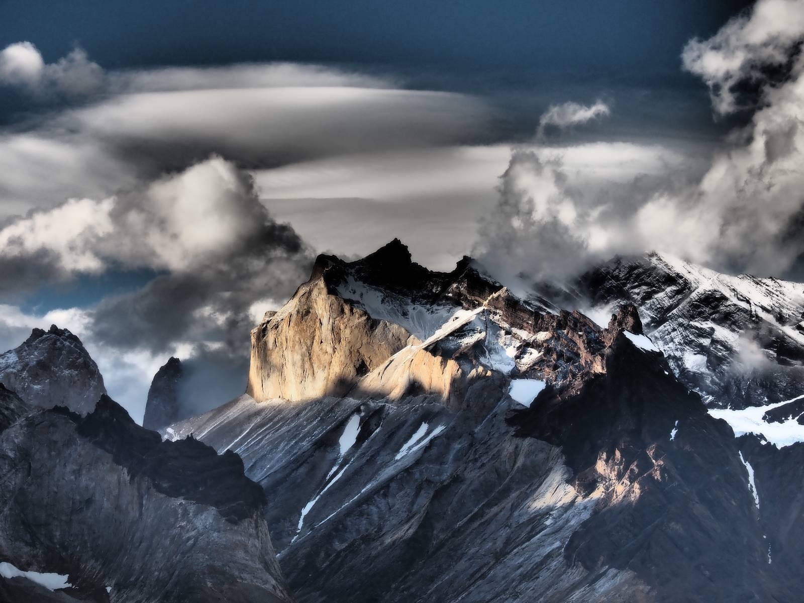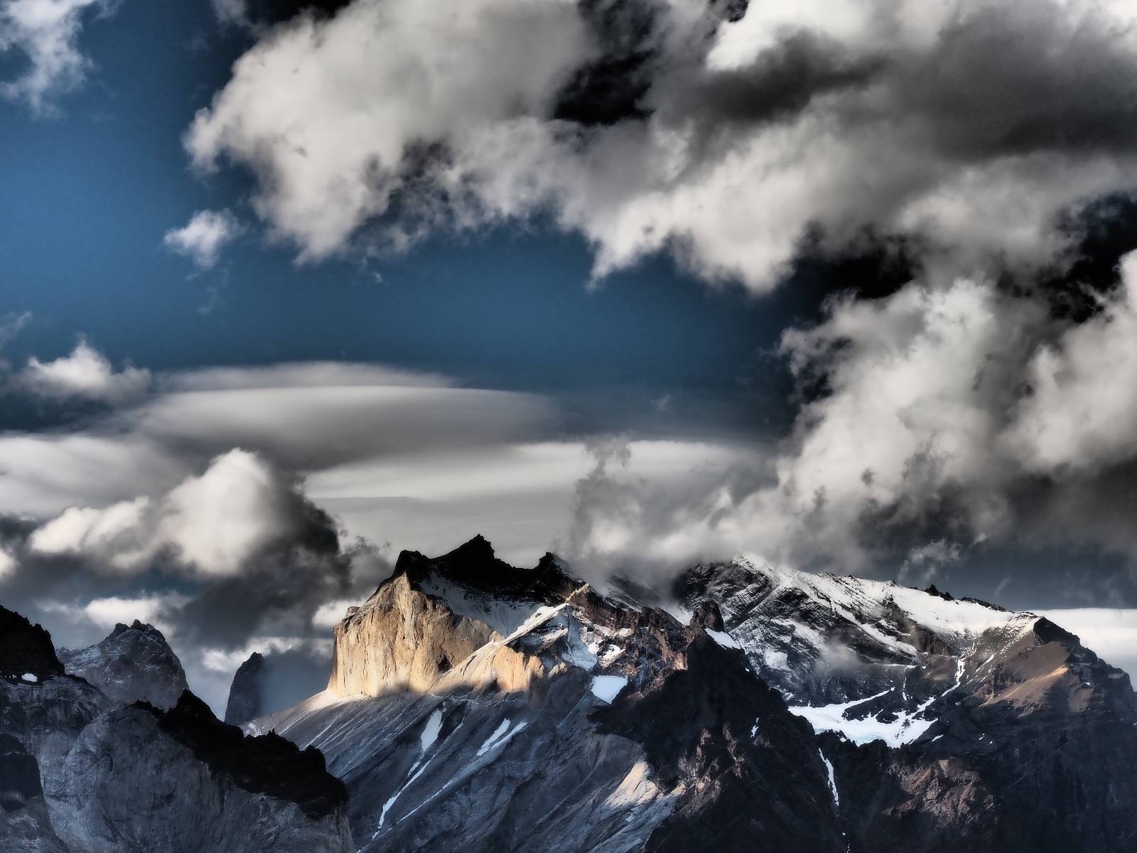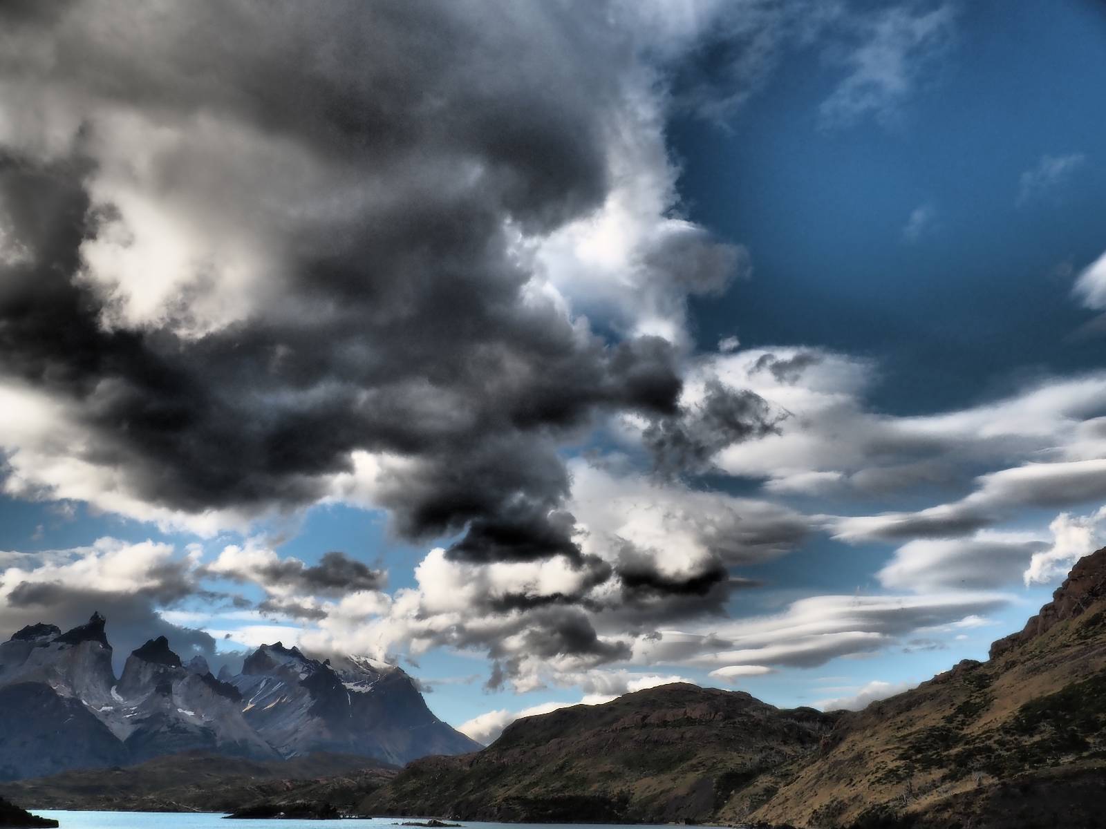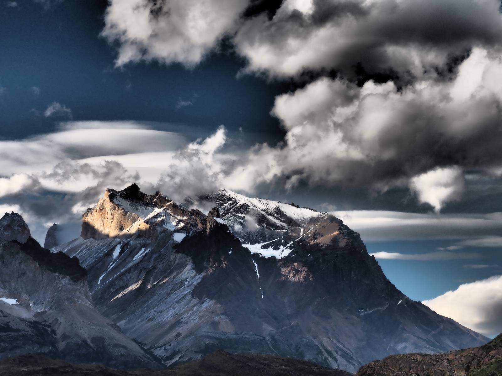 Der Weg ist gar nicht mehr so lang aber ich genieße das gemütliche Fahren und mache noch einige Fotostops, bis ich an den Campingplatz komme. Der sieht tatsächlich ganz normal aus!! Ich halte an und frage und für mein Zelt wollen sie ca. 20,- EUR haben. Ich bleibe eine Nacht, verstehe aber nicht, daß ich kaum Informationen gefunden habe, daß der Platz tatsächlich nicht so teuer ist und genügend Platz hat. Das Zelt ist bald aufgebaut und so schaue ich ins Restaurant und kaufe mir da ein kleines Bier. Das allerdings ist dann doch teuer! 8,- EUR für eine 0,33l Flasche! Aber das eine gönne ich mir und gehe etwas weiter vorn auf einen kleinen Aussichtspunkt mit Bänkchen und herrlichstem Blick über einen See auf das rückseitige Torre-Massiv. Ich erwische eine wunderbare Abendstimmung und hocke eine ganze Weile dort, bis ich mich zurück ins Restaurant begebe, um etwas zu essen. Auch das Essen ist teuer, einfach aber soweit ok. Ich hole mir meine Tüte Chips, die ich irgend wann aus Lust gekauft hatte und nun schon eine Weile mit mir rumfahre und gehe zurück auf das Bänkchen und lasse beim Anblick des vor mir liegenden Massivs die Chips knacken. Der tiefe Taleinschnitt ist also der mittlere Zacken vom „W“ den man laufen könnte. Ich erkenne Gesichter in den Felsen und habe mir bald drei Piraten rausgeschaut, die nun ständig zu mir zurück blicken. Oben scheint der Wind ganz gut zu gehen, so wie die linsenförmigen Wolken aussehen aber das stört den Condor der da kreist nicht. So langsam tauchen die ersten Sterne auf und die Sonne erleuchte nur noch ein paar Bergkanten und -spitzen in einem leichten Rot. Heute sollen alle Planeten in einer Linie zu sehen sein aber meine App sagt, dass die meisten noch unterm Horizont versteckt sind und außerdem ziehen aus der Richtung ein paar Wolken auf. Als es mir zu frisch wird gehe ich dann doch zurück und verkrieche mich in mein Zelt.