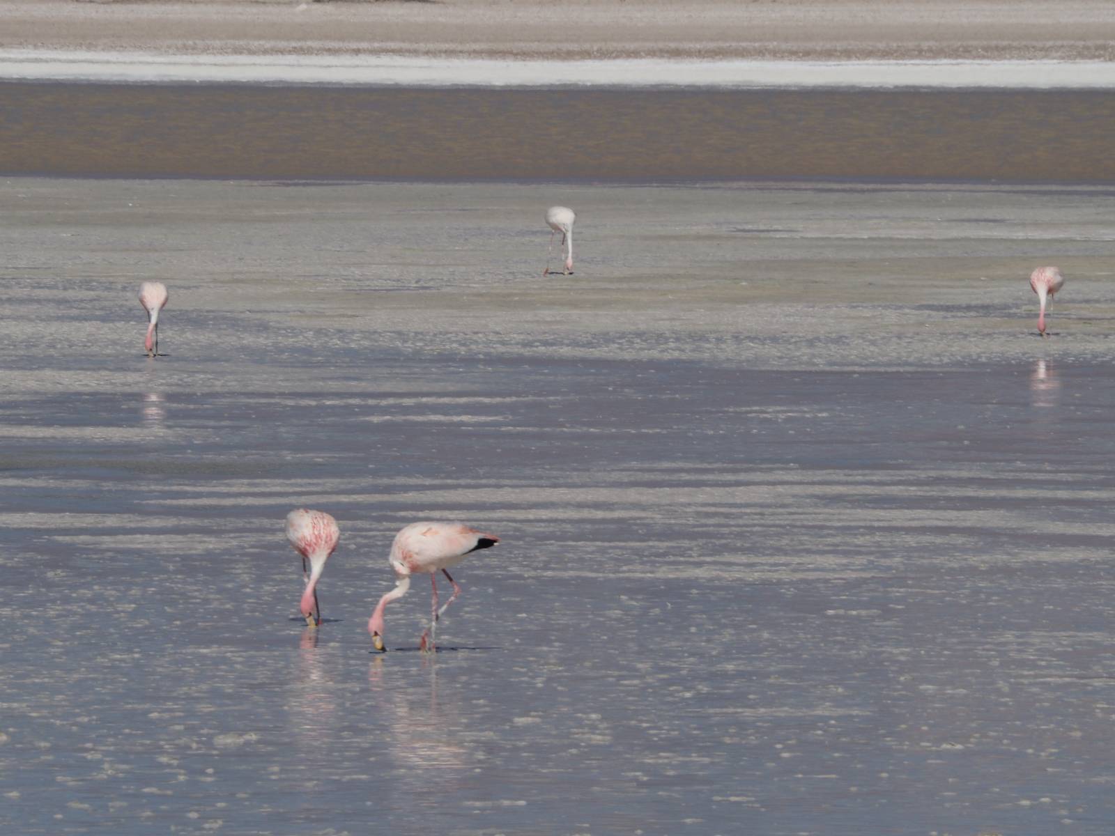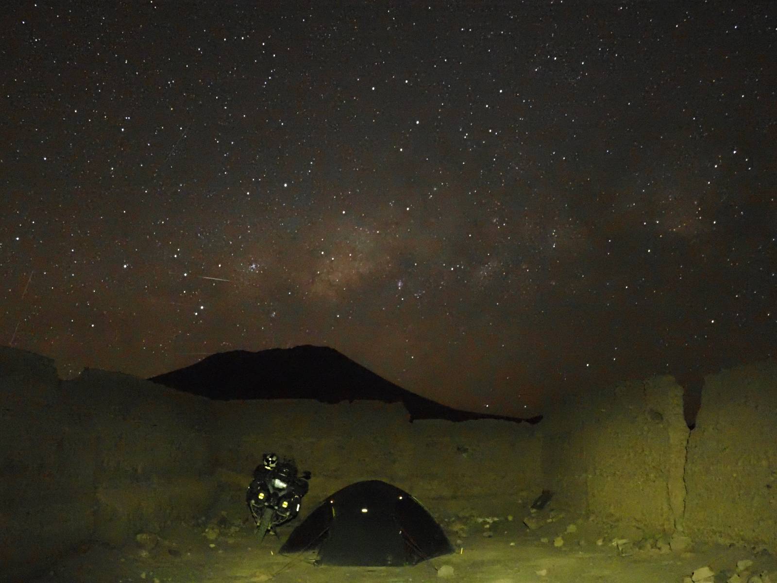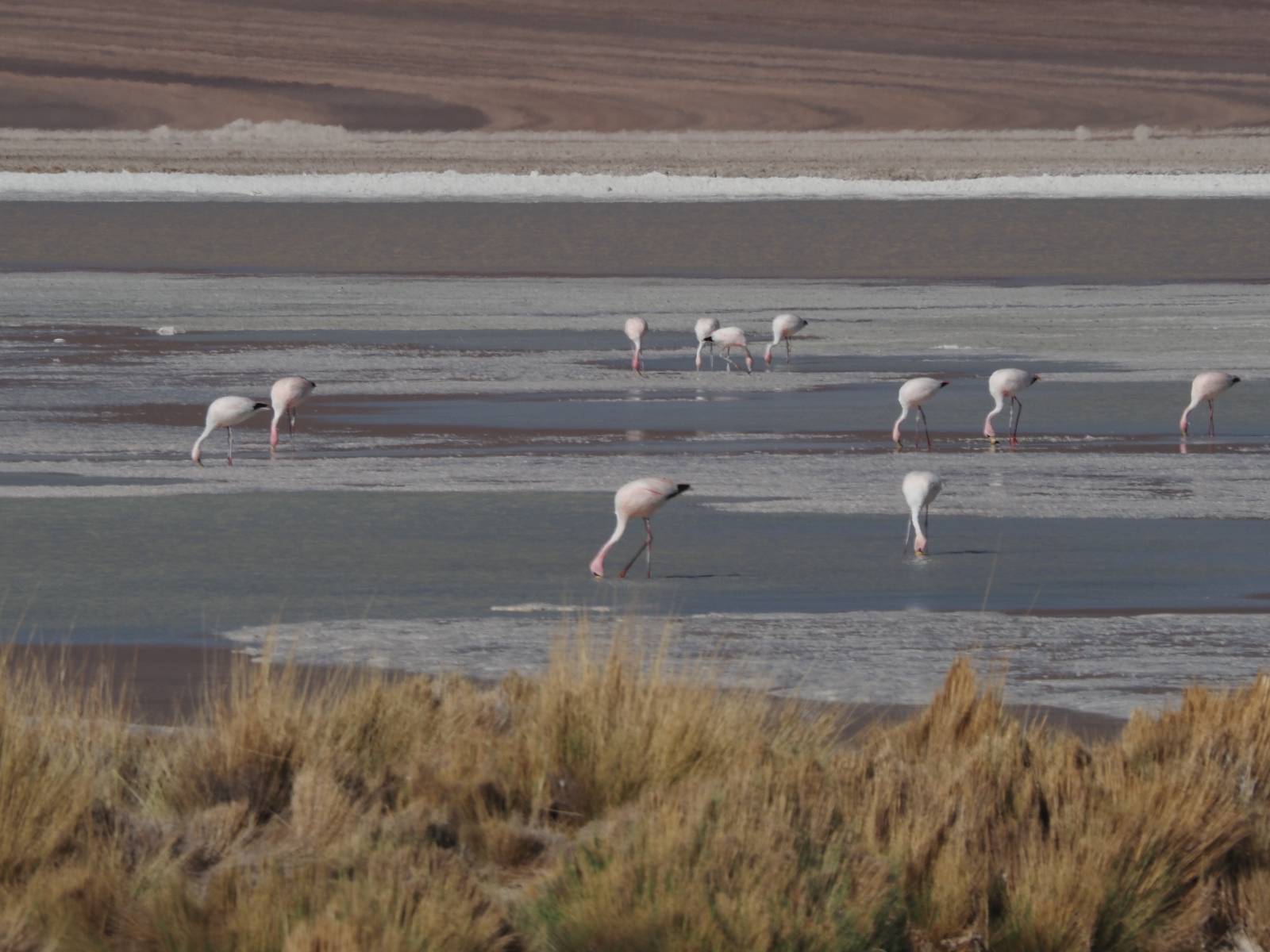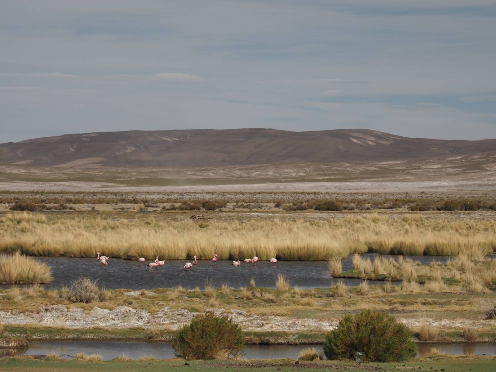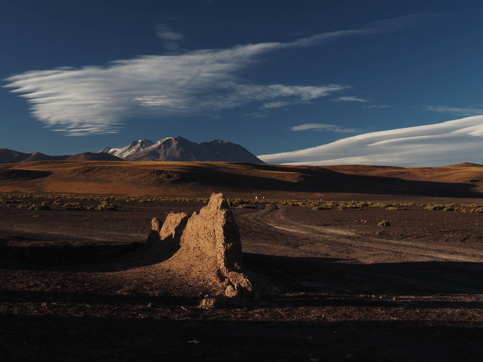 Ich habe San Pedro hinter mir gelassen. Da ich nun nicht die Laguna Route nehe fahre ich nach einem Tankstopp in Calama weiter zur Grenze nach Ollaguë. Auch wenn es nicht die Abenteuerstraße ist, so gibt es trotzdem viel zu staunen. Seicht und langsam werde ich immer höher geführt von ca 2600m in San Pedro auf erstmal ca. 3700m in Ollaguë. Aber wie das so ist, zum einen habe ich ja schon die ersten 100km bis Calama hinter mir, so dass es schon Nachmittag ist und zum anderen halte ich natürlich wieder andauernd an. Bis ich ich zum Salar Ascotan komme. Auch hier, wie schon auf der ganzen Strecke sensationelle Natur. Ich beobachte die hiesiegen Rehe, wie sie über den Salzsee an mir vorbeilaufen und wundere mich gerade wieder, wie sie es schaffen hier oben zu überleben! Ein Stückchen weiter Flamungos äh, Flamingos! Ich denke an Jessi und versuche sie sogar mit dem Tele zu kriegen! Und natürlich bietet sich mir ein neuer Hauseingang an. Ich habe keine Lust mehr bis zur Grenze zu hetzen. Ich habe wieder drei Wände, die mich vor Wind schützen und diesmal darf ich sogar das Motorrad mit rein nehemen. Schräg aber ich habe Netz! Und so kann ich von der sich minütlich ändernden Abendstimmung ein paar Bilder in den Status stellen. So stolpere ich hin und her zwischen Zelt bauen, kochen und Fotos und Videos machen…und… ich hatte eine unglaubliche Nacht…
