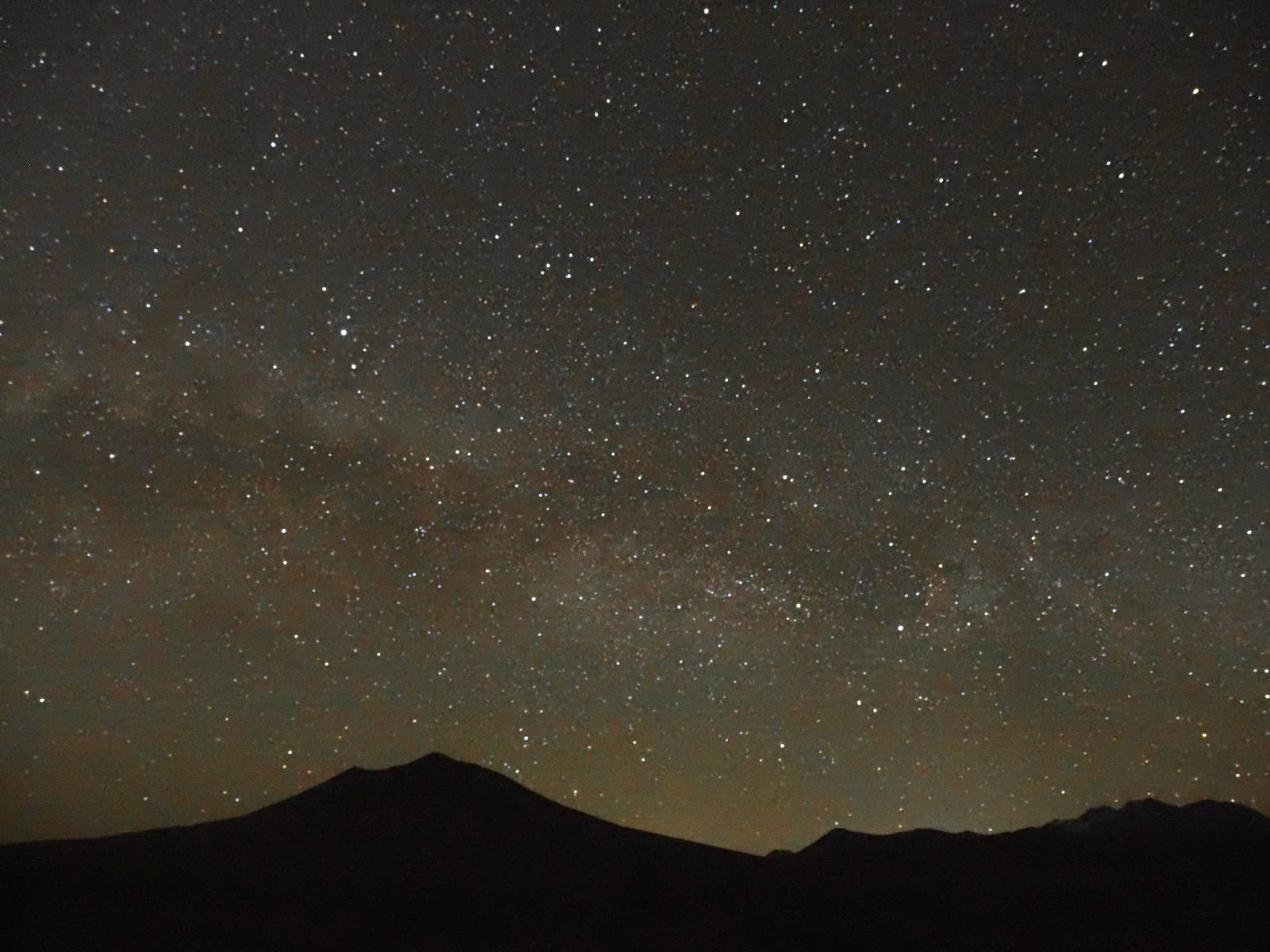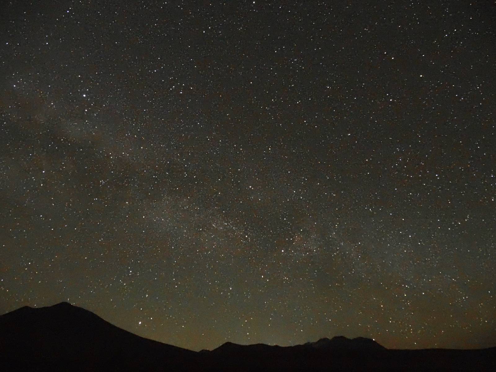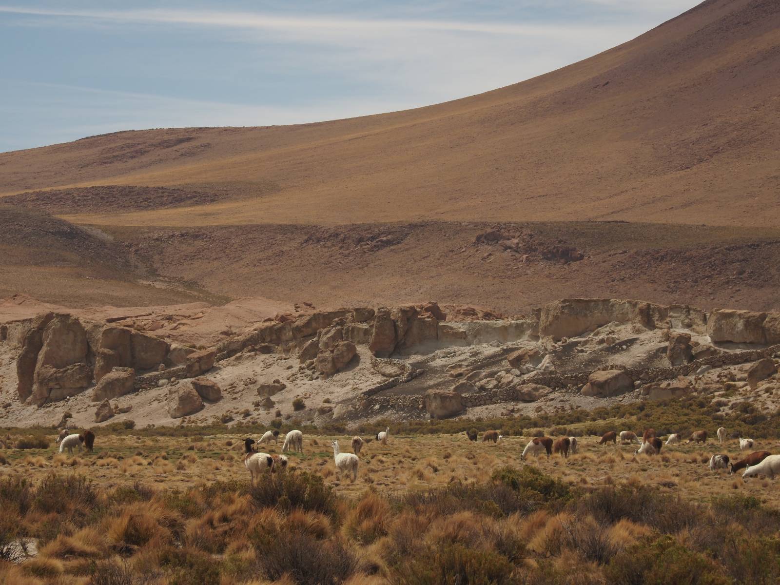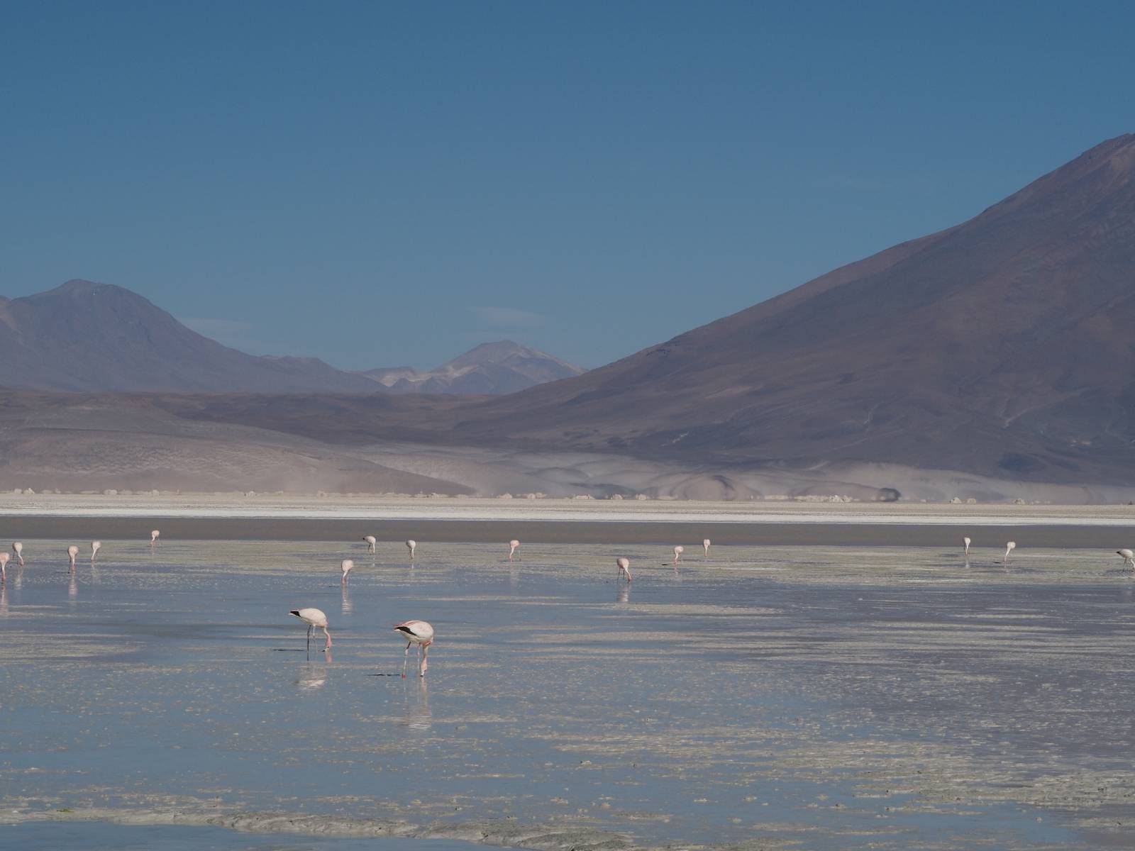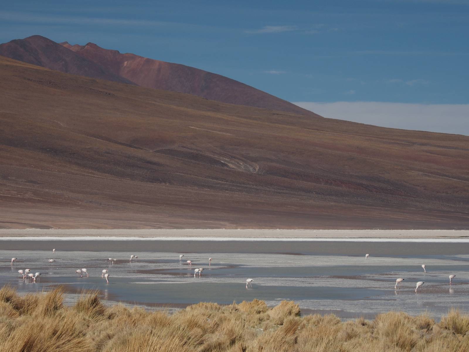 Ich habe San Pedro hinter mir gelassen. Da ich nun nicht die Laguna Route nehe fahre ich nach einem Tankstopp in Calama weiter zur Grenze nach Ollaguë. Auch wenn es nicht die Abenteuerstraße ist, so gibt es trotzdem viel zu staunen. Seicht und langsam werde ich immer höher geführt von ca 2600m in San Pedro auf erstmal ca. 3700m in Ollaguë. Aber wie das so ist, zum einen habe ich ja schon die ersten 100km bis Calama hinter mir, so dass es schon Nachmittag ist und zum anderen halte ich natürlich wieder andauernd an. Bis ich ich zum Salar Ascotan komme. Auch hier, wie schon auf der ganzen Strecke sensationelle Natur. Ich beobachte die hiesiegen Rehe, wie sie über den Salzsee an mir vorbeilaufen und wundere mich gerade wieder, wie sie es schaffen hier oben zu überleben! Ein Stückchen weiter Flamungos äh, Flamingos! Ich denke an Jessi und versuche sie sogar mit dem Tele zu kriegen! Und natürlich bietet sich mir ein neuer Hauseingang an. Ich habe keine Lust mehr bis zur Grenze zu hetzen. Ich habe wieder drei Wände, die mich vor Wind schützen und diesmal darf ich sogar das Motorrad mit rein nehemen. Schräg aber ich habe Netz! Und so kann ich von der sich minütlich ändernden Abendstimmung ein paar Bilder in den Status stellen. So stolpere ich hin und her zwischen Zelt bauen, kochen und Fotos und Videos machen…und… ich hatte eine unglaubliche Nacht…