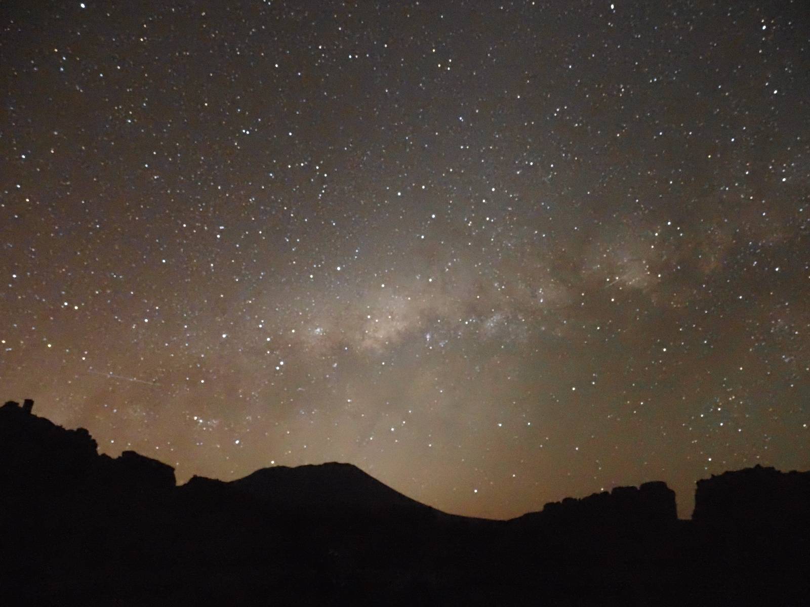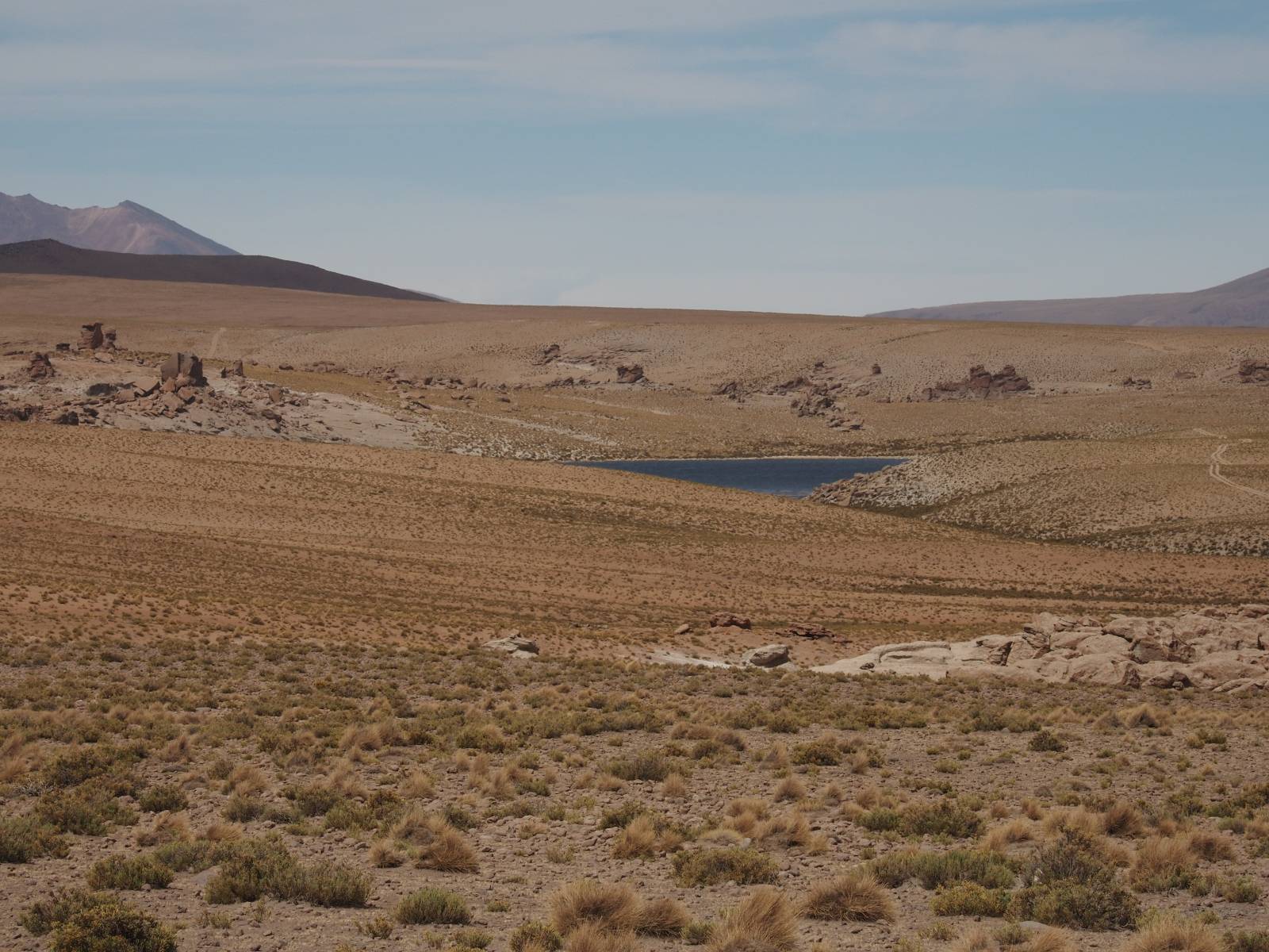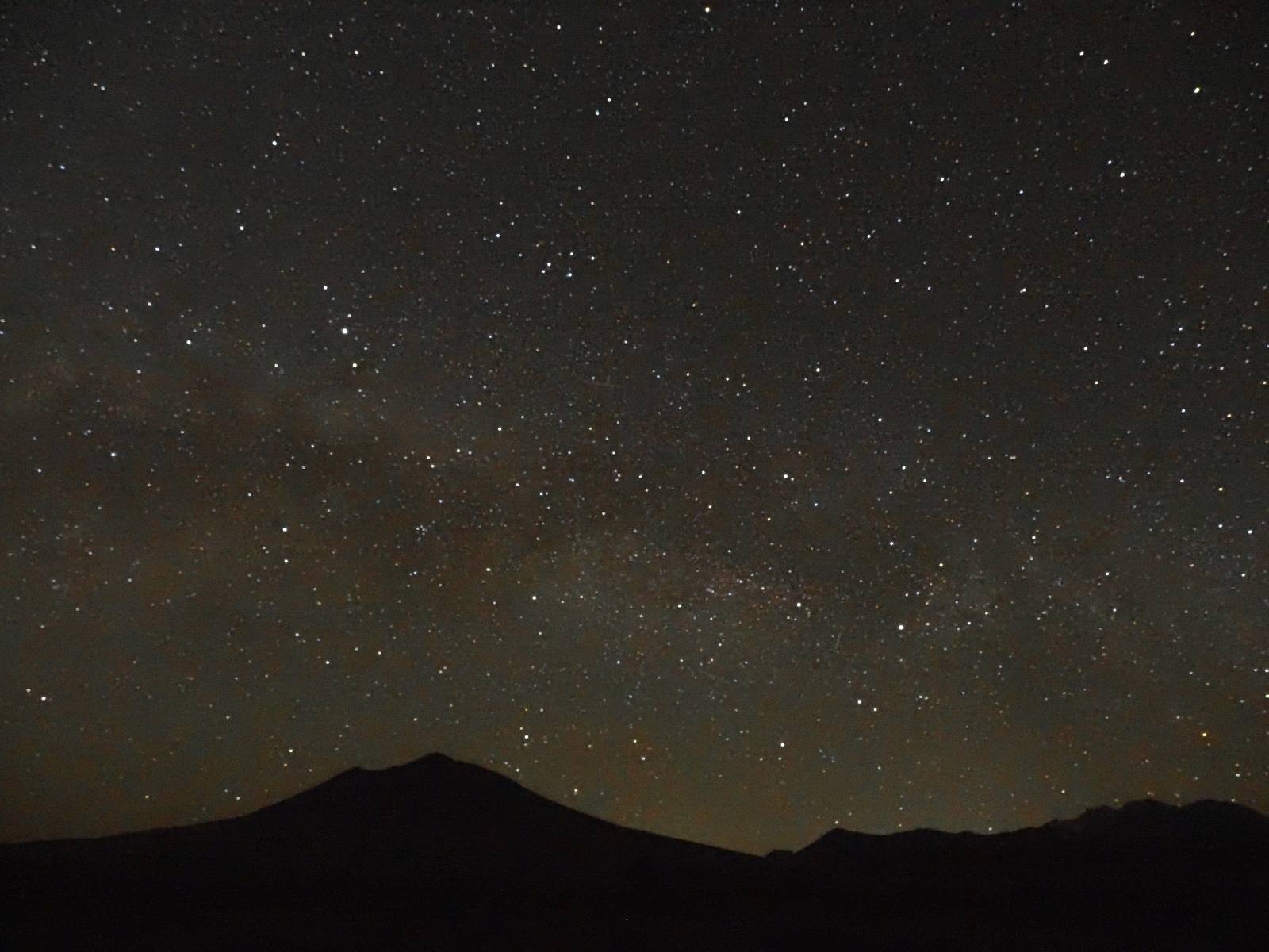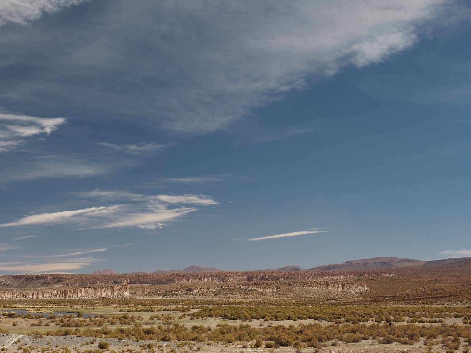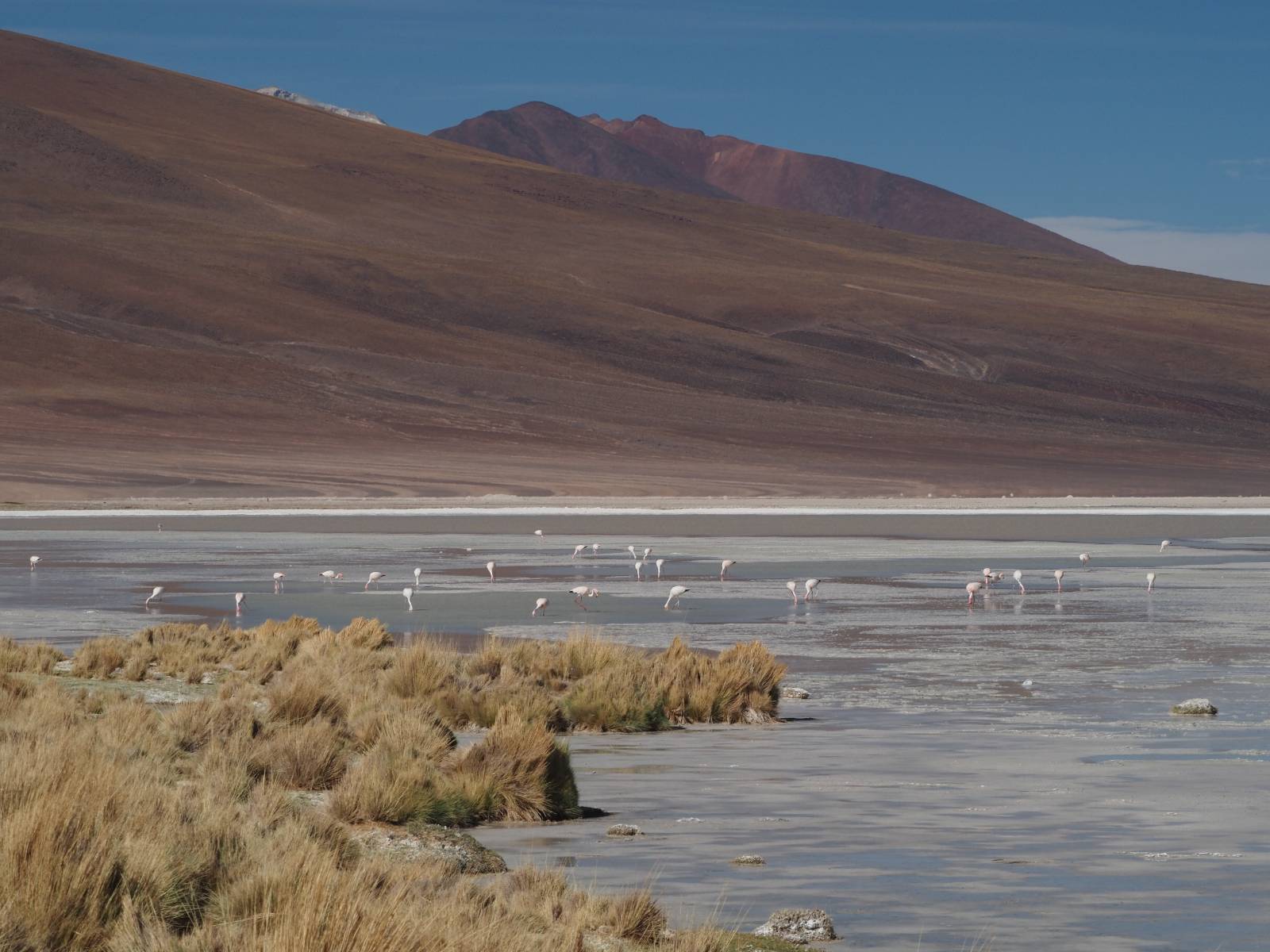 Ich habe San Pedro hinter mir gelassen. Da ich nun nicht die Laguna Route nehe fahre ich nach einem Tankstopp in Calama weiter zur Grenze nach Ollaguë. Auch wenn es nicht die Abenteuerstraße ist, so gibt es trotzdem viel zu staunen. Seicht und langsam werde ich immer höher geführt von ca 2600m in San Pedro auf erstmal ca. 3700m in Ollaguë. Aber wie das so ist, zum einen habe ich ja schon die ersten 100km bis Calama hinter mir, so dass es schon Nachmittag ist und zum anderen halte ich natürlich wieder andauernd an. Bis ich ich zum Salar Ascotan komme. Auch hier, wie schon auf der ganzen Strecke sensationelle Natur. Ich beobachte die hiesiegen Rehe, wie sie über den Salzsee an mir vorbeilaufen und wundere mich gerade wieder, wie sie es schaffen hier oben zu überleben! Ein Stückchen weiter Flamungos äh, Flamingos! Ich denke an Jessi und versuche sie sogar mit dem Tele zu kriegen! Und natürlich bietet sich mir ein neuer Hauseingang an. Ich habe keine Lust mehr bis zur Grenze zu hetzen. Ich habe wieder drei Wände, die mich vor Wind schützen und diesmal darf ich sogar das Motorrad mit rein nehemen. Schräg aber ich habe Netz! Und so kann ich von der sich minütlich ändernden Abendstimmung ein paar Bilder in den Status stellen. So stolpere ich hin und her zwischen Zelt bauen, kochen und Fotos und Videos machen…und… ich hatte eine unglaubliche Nacht…