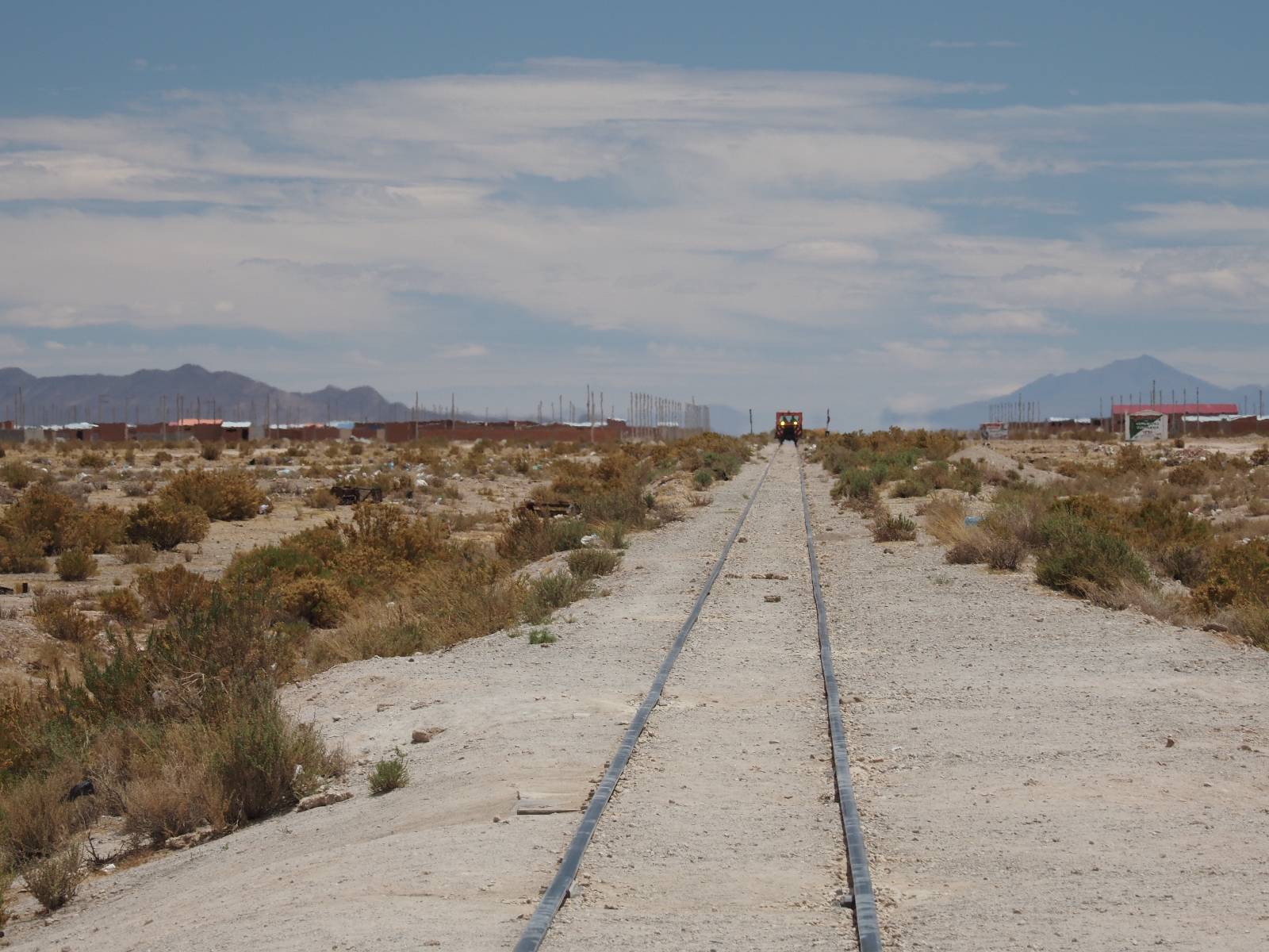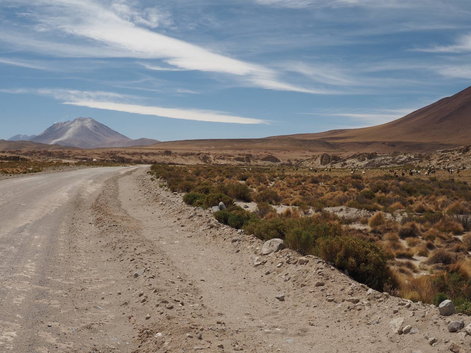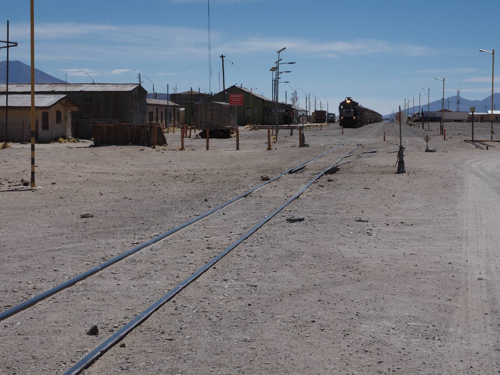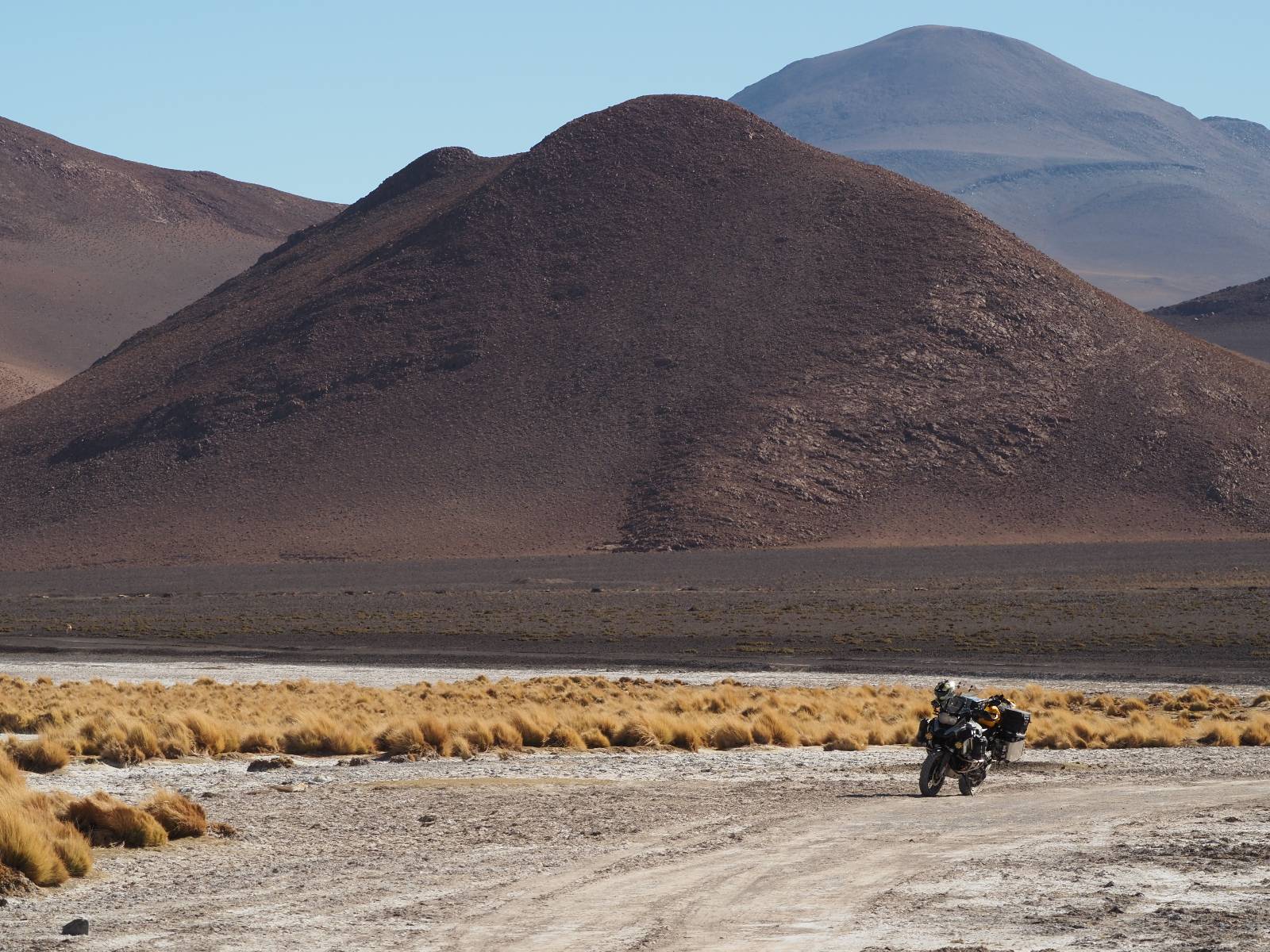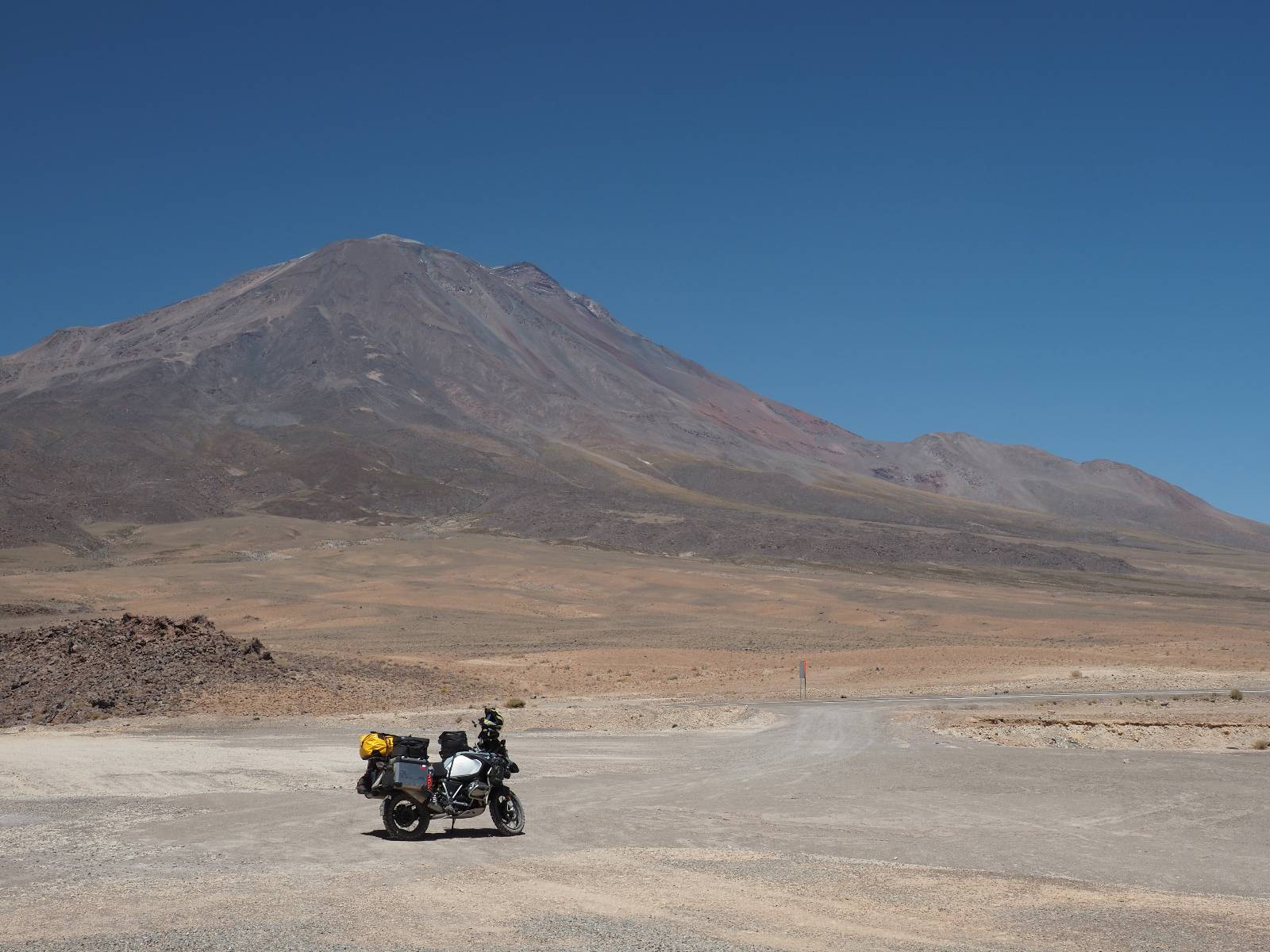 Am nächsten Morgen die übliche Routine! Nach dem ich mich auf den Weg gemacht habe komme ich in Ollaguë an. Wieder so ein verlassen anmutender Ort, wo sich um 12:00 Uhr mittags die vertrockneten Wüstenbüsche vom Wind über die Straßen treiben lassen. Ich frage nach einem Restaurant und finde letztendlich eine kleine Bude und bekomme dort ein ganz leckere Suppe mit Reis, Kartoffel und einem Stückchen Huhn. Ich bin gerade fertig als scheinbar einige Grenzgänger aus Bolivien eintreffen und die drei Tische fast keinen Platz mehr bieten. Ich mache meinen Platz frei und bewege mich an die Grenze. Erst aus Chile raus, dann ein zwei km weiter in Bolivien wieder rein. Ich bin nicht der einzige Ausländer und Motorradfahrer, der auf eine andere Seite will. Bolivien möchte das Einreiseformular online und bieten dafür sogar Wlan an. Doch das Sch…ding will sich nicht speichern lassen! Nach dem gefühlt 10. Versuch und nachdem ich wirklich alle Leerzeichen, versehentliche und beim Kennzeichen gewollte, entfernt habe und trotzdem die Fehlermeldung kommt, speichert es das Formular dann doch. Nach geschätzen ein einhalb Stunden bin ich in Bolivien und nehme Kurs auf Uyuni. Auch hier nehme ich die Hauptstraße! Hier und da gibt es noch etwas Befestigung, ansonsten viele Löcher, Sand und vor allem Staub! Staub der von den LKW aufgewirbelt wird die volle Kanne mir entgegengepest kommen. Ich gehe davon aus, dass die meisten leer zurückkommen und eher von Chile aus Bolivien mit Sprit und ähnlichem versorgen. Ein Loch sehe ich zu spät, bzw. kann ihm nicht mehr ausweichen. Eigentlich sieht es nicht so schlimm aus aber die Touratech-Suspension kommt zumindest vorn an ihre Grenzen und schlägt einmal durch und ich mache einen Hüpfer! Trotz der vielen LKW, die mir doch ganz gut Aufmerksamkeit abfordern, bin ich begeistert von der Landschaft! Es wird gefühlt grüner, die Felsen ändern sich und die Vulkane, von denen der ein oder andere sich eine Pafft, sind beeindruckend! Laut Navi soll ich um ca. 18:00 Uhr ankommen, doch es ist 18:00, was zum Teufel macht das Navi nun schon wieder und ich habe noch 80km zu fahren, also über eine Stunde!! So hatte ich nicht gewettet! Da hätte ich mir vielleicht doch noch einen netten Zeltplatz gegönnt! Ich hatte ein zwei schöne stellen gesehen. Irgend was stimmt da wieder nicht! Ich reite kurz nach 19:00 Uhr in Uyuni ein. Eine karrierte, langweilig, rechteckig aufgeteilte Stadt erwartet mich. Die wichtigsten Hauptstraßen sind mal nicht aus Sand… Ich halte, mein Netz funktioniert und ich schaue was es an Unterkünften gibt. Das erste Hostal ist ausgebucht. Ich fahre zum nächsten und bekomme ein großes Zimmer mit eigenem Bad, Parkplatz um die Ecke für 15BOB’s. Ich finde Zeit, um mal zu schauen, warum das Navi schon wieder gesponnen hat. Hat es aber nicht! Diesmal war es korrekt und ich muss feststellen, dass Bolivien eine Stunde mehr Zeitunterschied hat. Uyuni selber finde ich nicht so sehr aufregend. Es gibt ein kleines Stadtzentrum, wo man alles findet, eine große Hauptstraße und etwas weiter weg wird es einfach staubig. Ich wechsele EUR in BOB in einer Wechselstube und bekomme etwas mehr als den offiziellen Kurs. Ich hatte vorher mal nach Blue Dollar Bolivien geschaut, da wäre es 1:12 statt der offiziellen ca. 1:8 gewesen. Ich bekomme an der besten Stube 1:10 aber nur wenn ich große Scheine ab 50 EUR aufwärts benutze, sonst 1:9. Ich gönne mir den nächsten Tag, um etwas durch die nähere Umgebung zu laufen, mir die Märkte anzusehen und letztendlich den letzten Eintrag zu schreiben.